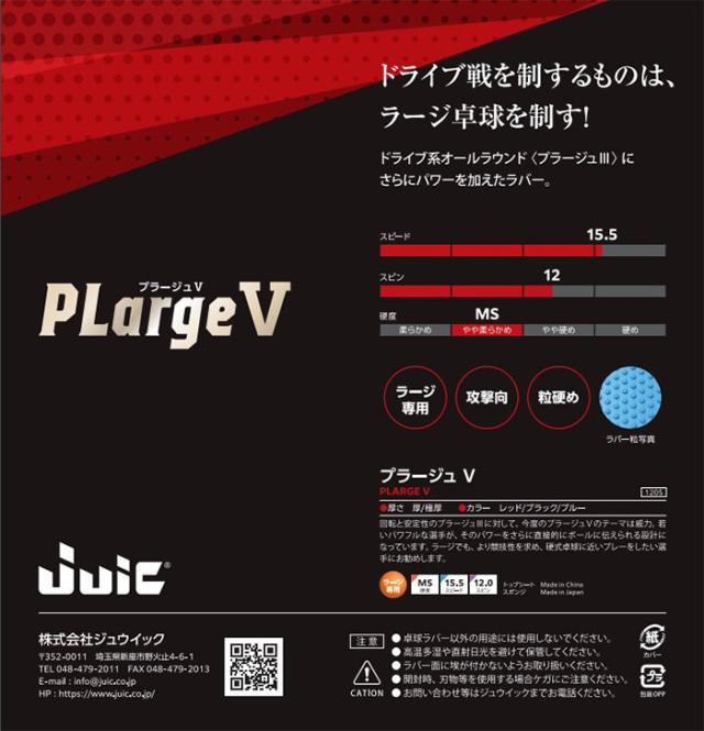 ジュウイック メンズ レディース プラージュV PLARGE V 卓球ラケットラバー ラージボール専用 ブラック 黒 ブルー レッド 青 赤 送料無料 JUIC 1205