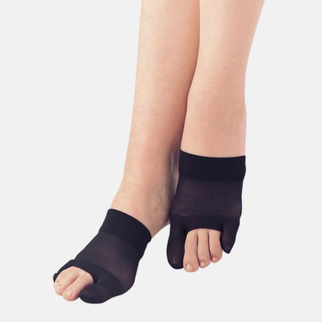 伝染しにくい「ノンラン編み」のストッキング素材を使用し、足指間パッドが無いため、靴下の下に着用してもいつもの靴が履けます。 靴下の着用をお勧めします。