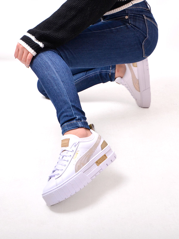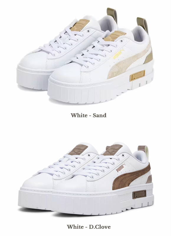 PUMA プーマ ウィメンズ メイズ グラム スニーカー ●送料無料 合成皮革のアッパー、シュータンを使用したクリーンなルックス、厚底のボリューム感のあるシルエットが特徴です。