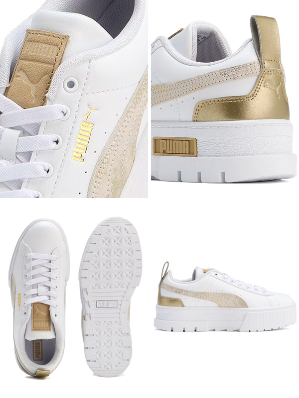 PUMA プーマ ウィメンズ メイズ グラム スニーカー レディース 白 厚底 おしゃれ かわいい シンプル ウィメンズ メイズ 白 メタリック加工 スウェード 393068