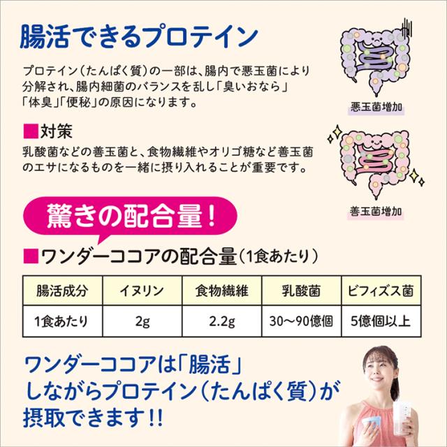 - ワンダーココア初めて購入!大豆たんぱくは苦手でしたが全く抵抗なく美味しく飲めました。溶けはよくダマにはならなかったです。 ただ甘いですが…