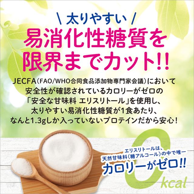 【原材料】乳清たんぱく(アメリカ製造)、エリスリトール、大豆たんぱく(非遺伝子組み換え)、イヌリン(食物繊維)、ココアパウダー、食塩、マルトデキストリン、乳酸菌末、ラクトース /グリシン、ベタイン、 乳化剤(大豆由来)、V.C、抽出V.E、ナイアシン、パンテトン酸Ca、微結晶セルロース、V.B1、V.B6、V.B2、V.A、葉酸、グリセリン、V.D、V.B12(一部に乳成分・大豆を含む)