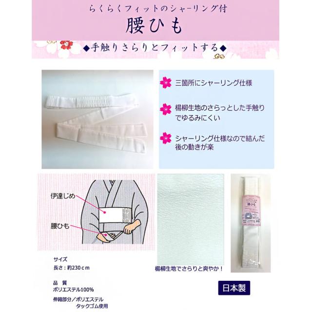 腰ひも 腰紐 こしひも 白 着付け小物 シャーリング 楊柳 楊柳生地 着物 浴衣 着付け 小物 男女兼用 メール便2ポイント