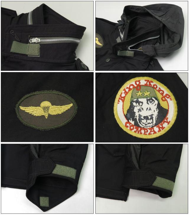 ヴェトナム戦争時、特殊任務に従事する兵士が現地でジャングルファティーグを黒く後染めして隠密行動に使用したことに着想してオリーヴドラブのコットン×ナイロンの生地を黒く染め直している。 【TOYS MCCOY】 【TOYSMCCOY】