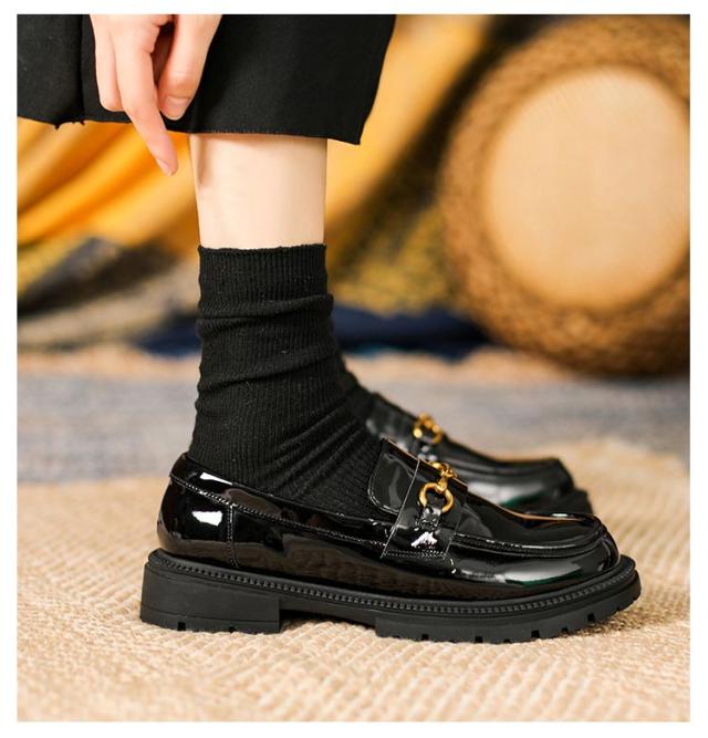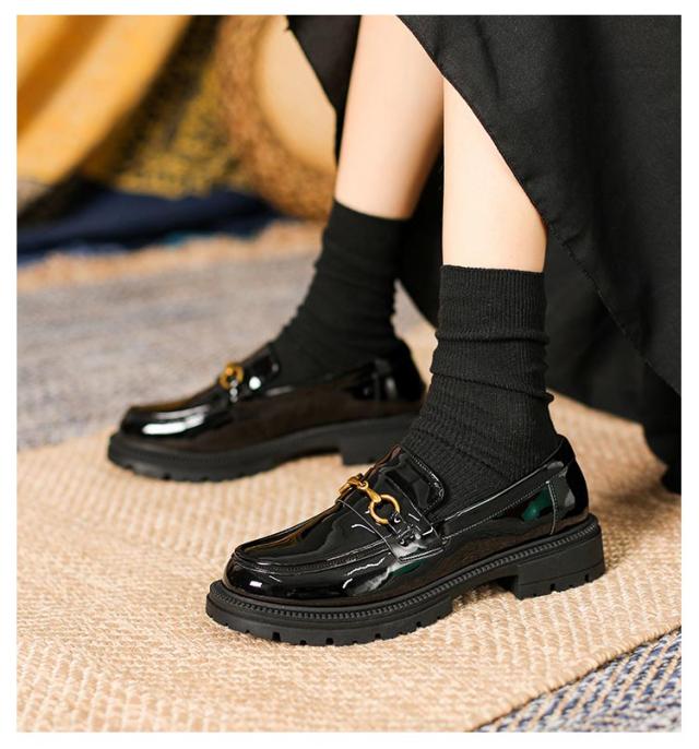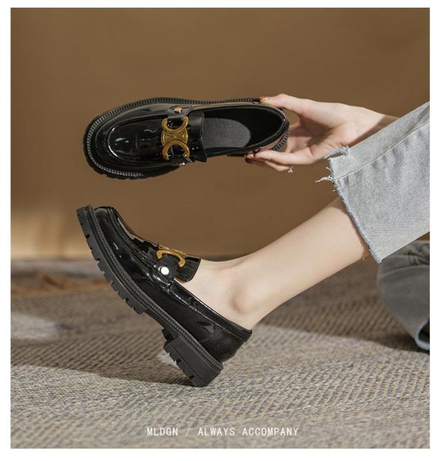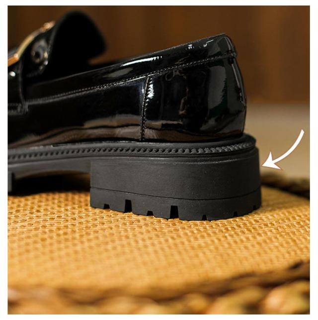 | 幅広ローファー 上品に高見えするエナメル調でボリューミーなファーがリッチな印象 柔らかく通気性のあるインソール 太くて安定感のあるヒール | |