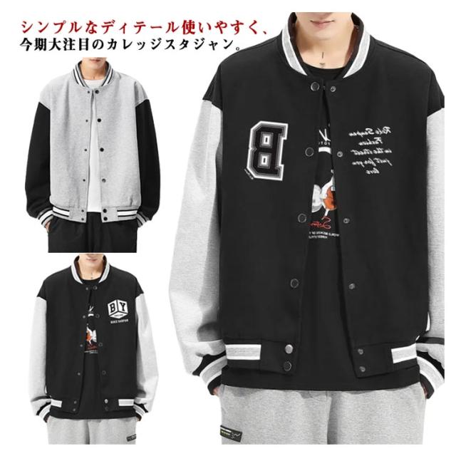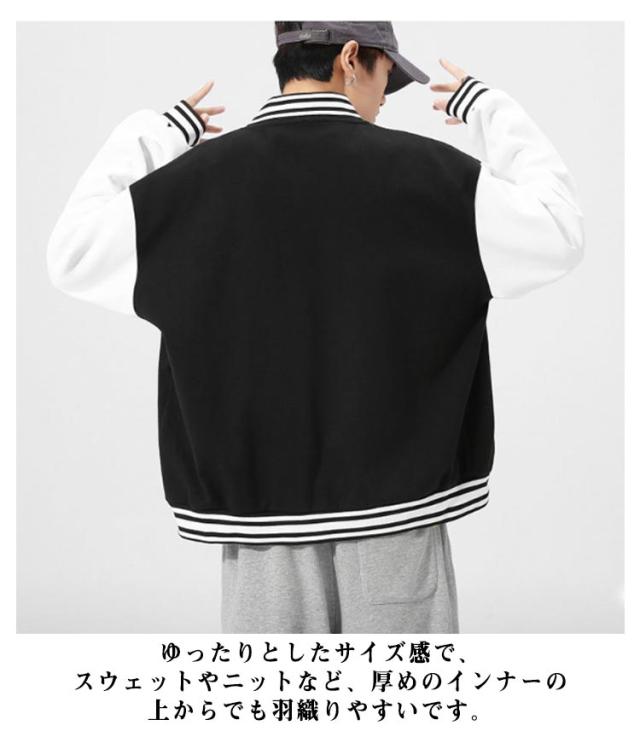 スタジャン メンズ 大きいサイズ スタジアム ジャンパー スタジャン スタジアムジャケット 配色 切り替え 野球服 あったか アウター ブルゾン ライン入り ビッグシルエット メンズファッション 大きいサイズ かっこいい