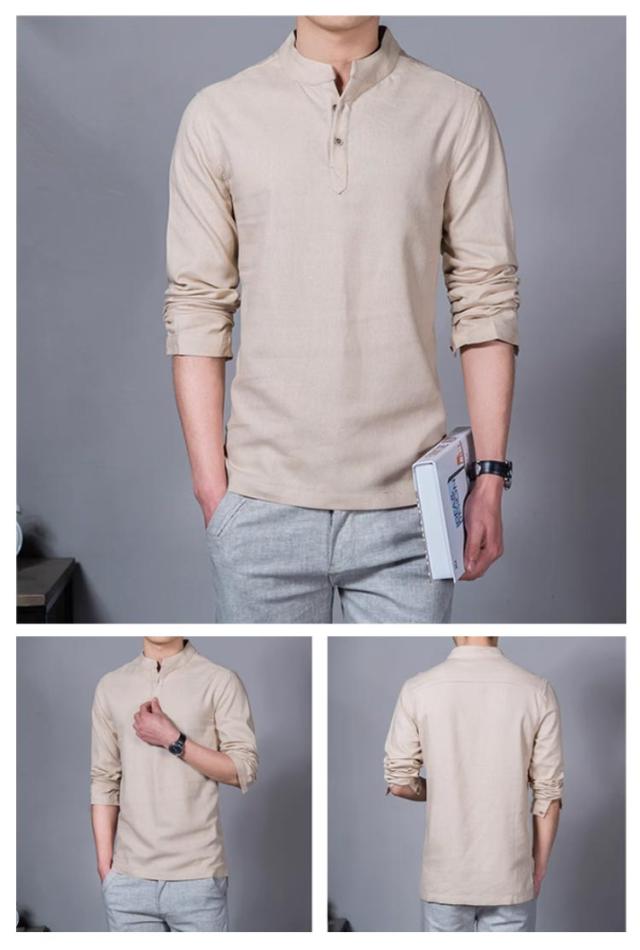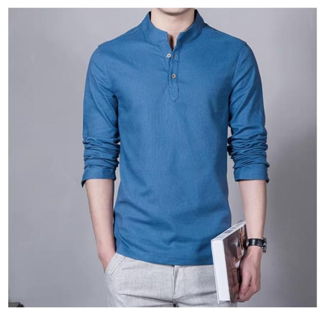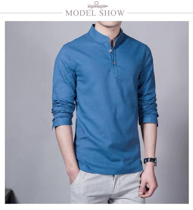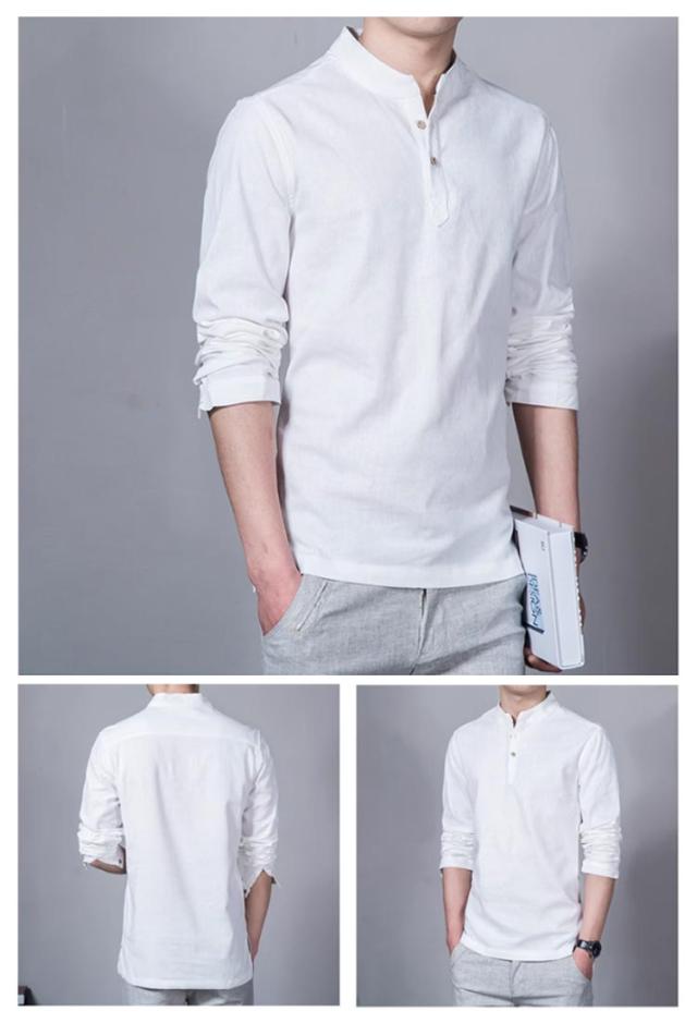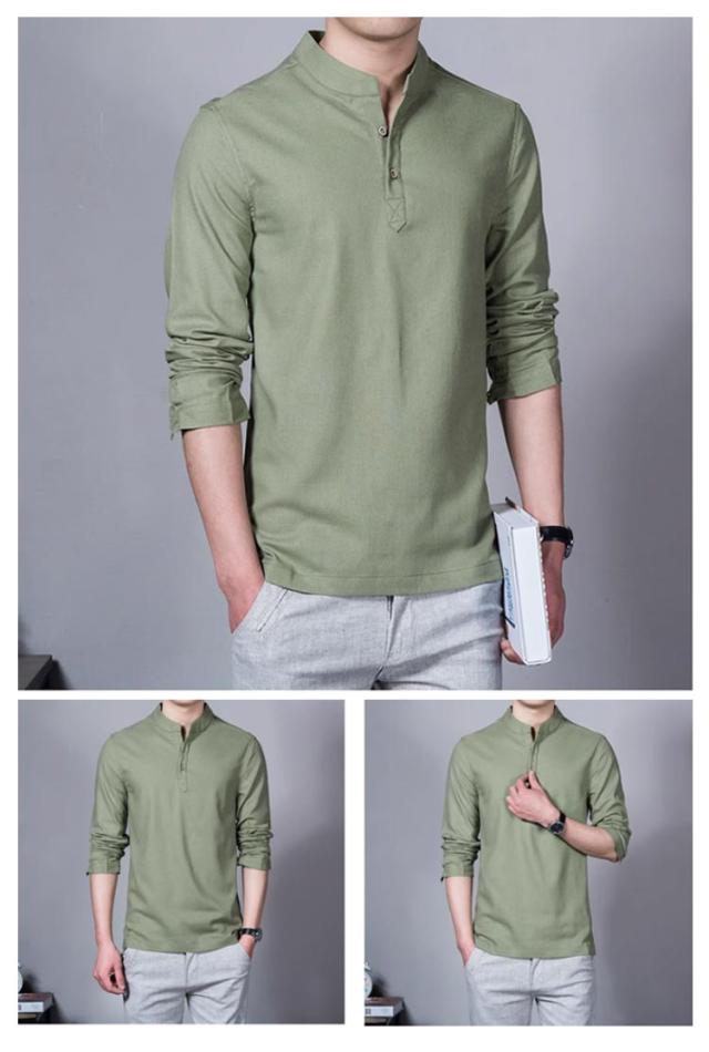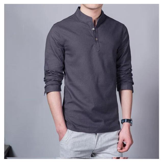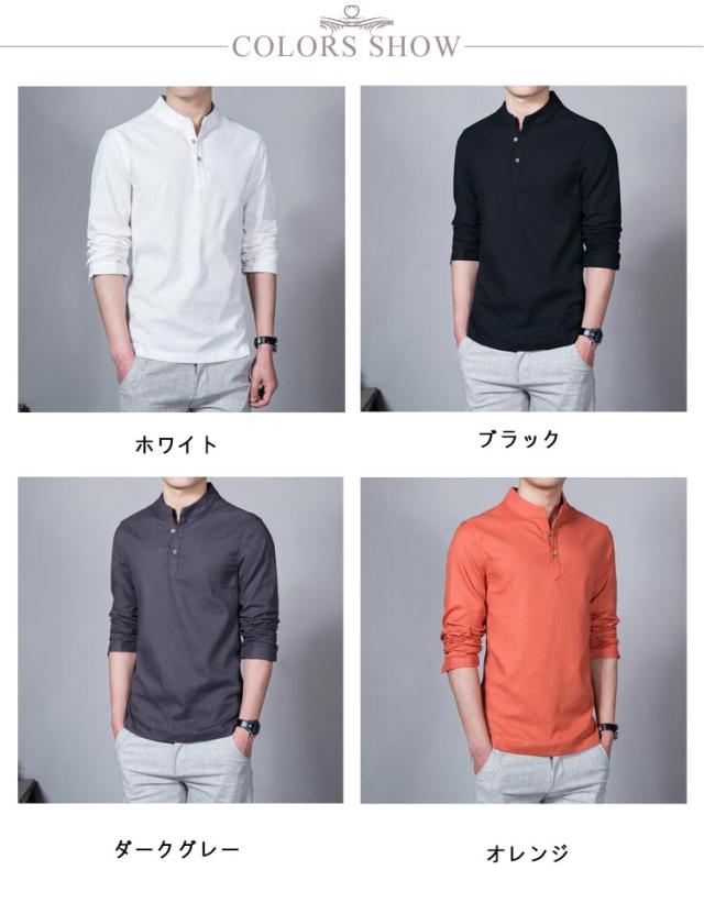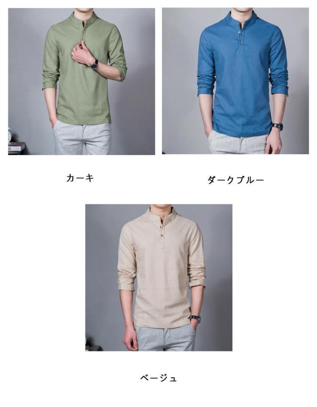 シャツ メンズ 綿麻シャツ リネンシャツ 麻 リネン 長袖 綿麻tシャツ 立ち襟 ヘンリーネック カジュアル 男性用 お兄系 無地 秋 通勤 通学 ヘンリーネック shirt M-5XL 綿麻 トップス 無地 シンプル 春服 秋物 新品