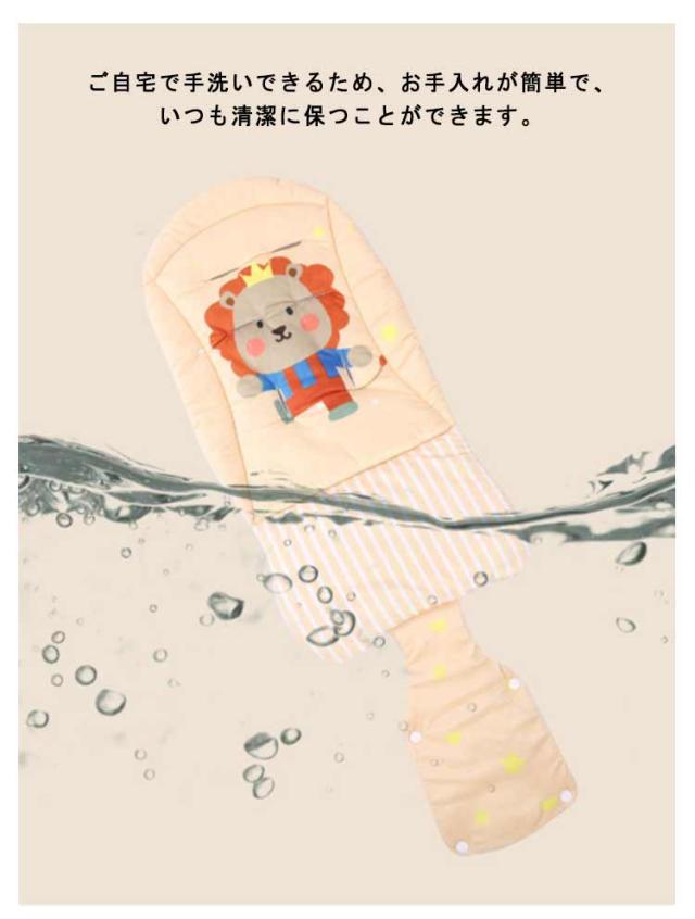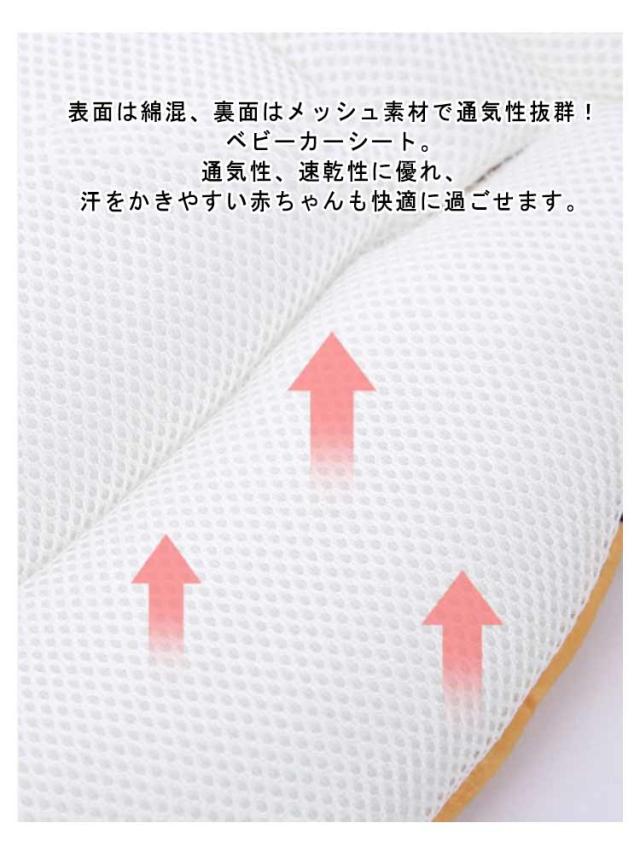 | 表面は綿混、裏面はメッシュ素材で通気性抜群!ベビーカーシート。 ふかふかクッションが衝撃を吸収してくれるのでしっかりとした安定感があります。 通気性、速乾性に優れ、汗をかきやすい赤ちゃんも快適に過ごせます。 ご自宅で手洗いできるため、お手入れが簡単で、いつも清潔に保つことができます。 | |