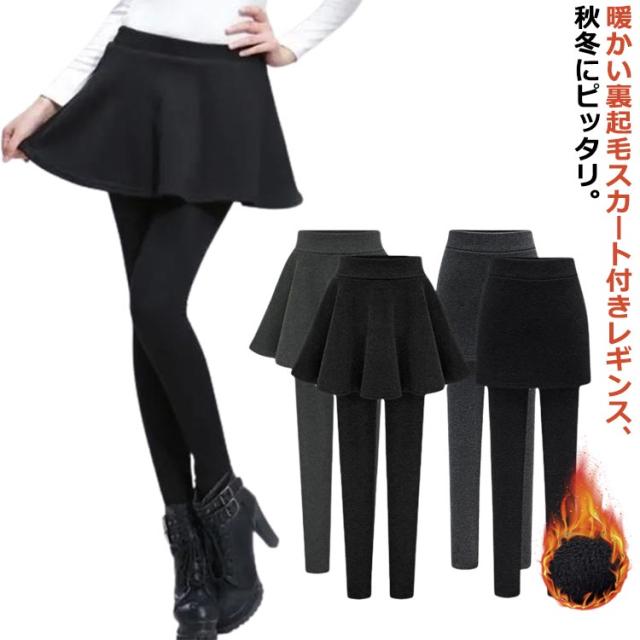 裏起毛スカート付きレギンス 裏起毛 暖か スカート付きレギンス レディース ボトムス スパッツ 裏起毛 ミニ丈 ウエストゴム タイトスカート フレアスカート レギンス 体型カバー 秋冬コーデ 大人 可愛い 一体型 細身 タイト シルエット タイトスカート 重ね着風