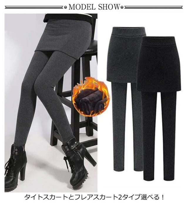 | 暖かい裏起毛スカート付きレギンス、秋冬にピッタリ タイトスカートとフレアスカート2タイプ選べる! ウエストは伸縮性のあるゴムバンドのデザインで、脱げにくく、履き心地も快適です。 フレアスカートのデザインはお腹をカバーし、スリムで背が高く見えます。 足を細く見せる小ぶりなデザインのレギンスです。 裏起毛と厚みのある生地で作られており、快適に着用できます、肌に優しく、しわになりにくい。 | |