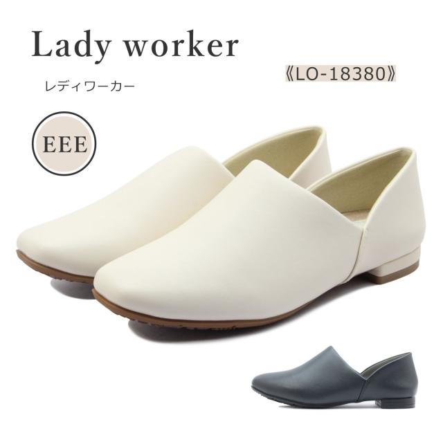 asics アシックス商事 Ladywoker レディワーカー LO 18380 レディース パンプス ローヒール スクウェアトゥ 3E 靴 黒 白 ブラック アイボリー