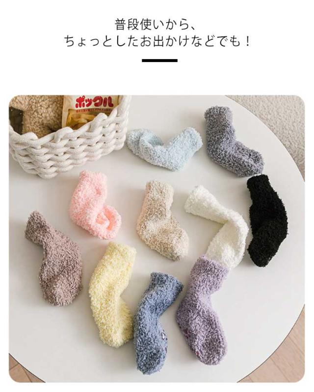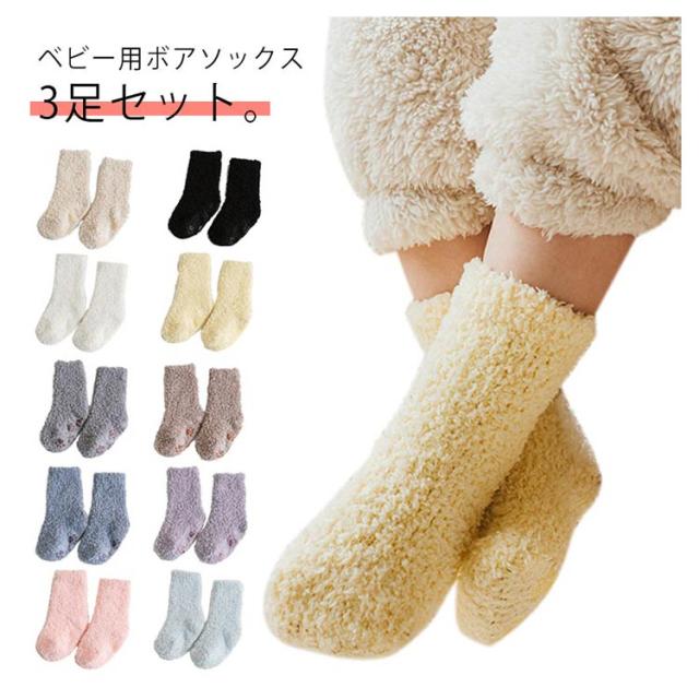 | ベビー用ボアソックス 3足セット。 足元の寒さをふんわり包み込みあっためる優しい靴下♪ 寒い時期には欠かせないモコモコソックス。 足底で滑地止めシリコン付き、歩く練習をする赤ちゃんに安全にご利用いただけます。 ゆったり仕様で、締め付け感あありません。 見た目も暖かくて可愛い♪柔らかくて履き心地のよいルームソックス。 しめつけもなくあったかソックスは秋冬の欠かせないアイテムです。 普段使いから、ちょっとしたお出かけなどでも! | |
