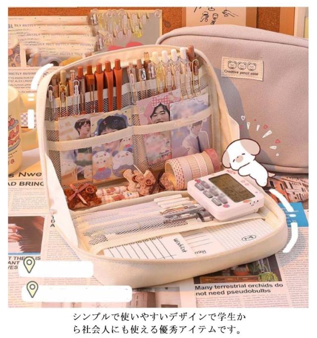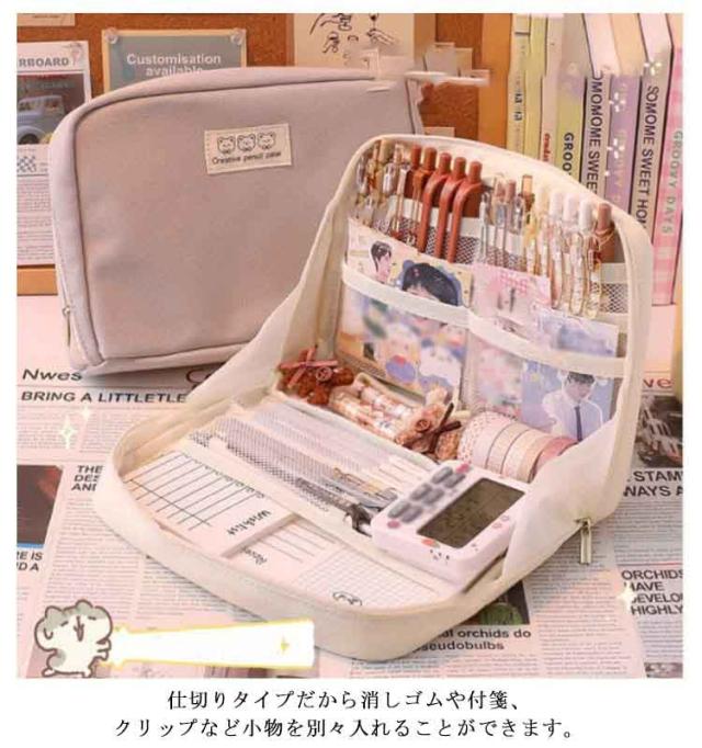 | 小物の収納もスッキリ!大容量ペンケース 仕切りタイプだから消しゴムや付箋、クリップなど小物を別々入れることができます。 丈夫で厚手な生地を使用、長くご愛用頂けます メインファスナーが大きく開くので、必要なものをスマートに取り出すことができ、ファスナーには引き手がついているので開閉しやすくなっています。 使い方いろいろ、メイクポーチにも便利、コンパクトだから旅行にもgood! シンプルで使いやすいデザインで学生から社会人にも使える優秀アイテムです。 | |