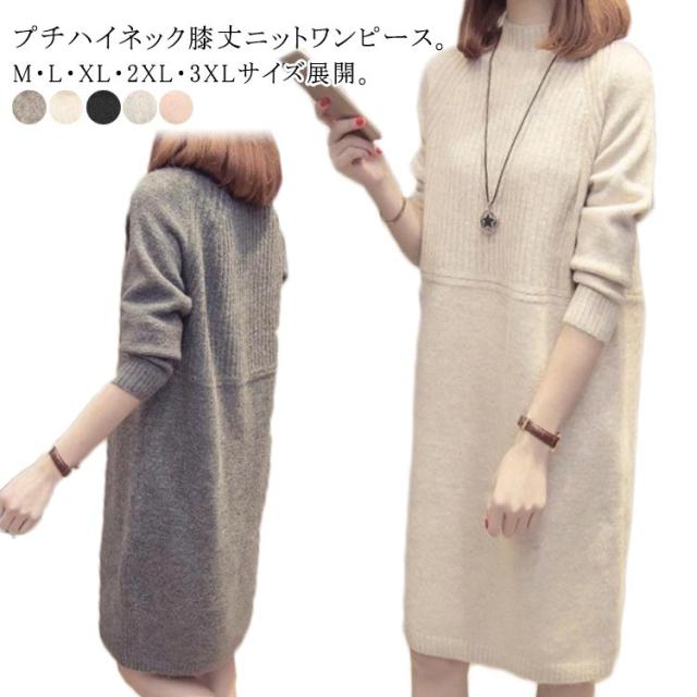| プチハイネック膝丈ニットワンピース。 M・L・XL・2XL・3XLサイズ展開。 幅広い年代で着られるシンプルニットワンピ。 春や秋には一枚で着たり、冬にはベーススカートや大きめのコートと合わせたりできます。 シンプルなデザインの中にオシャレなポイントがさりげなく施してあり、見た目も可愛いい。 しっかりした生地で型崩れもしない、チクチクもしない肌に優しいタッチ感。 少し腕の部分がキュッとしていた為、少しゆったり着たい場合、サイズアップをオススメ。 | |