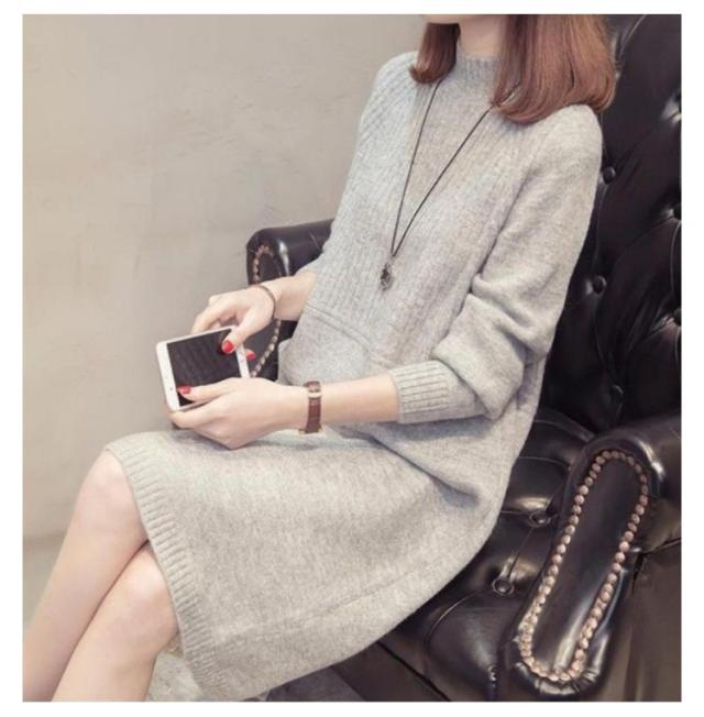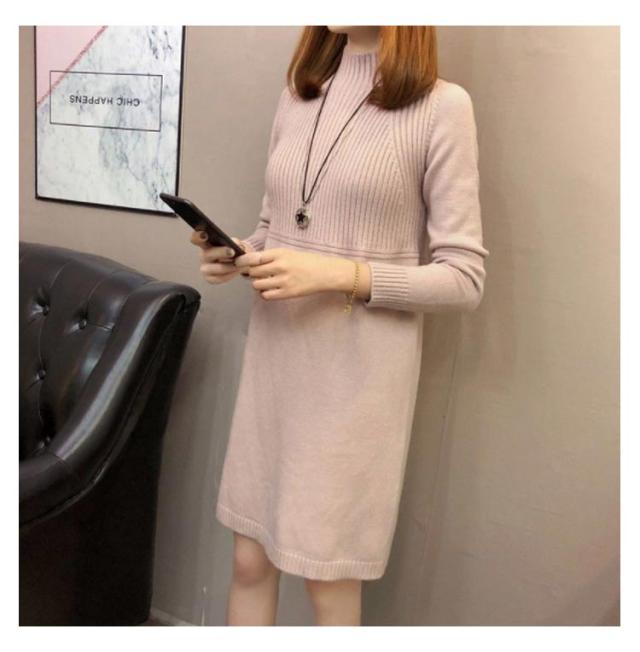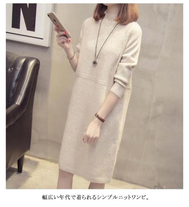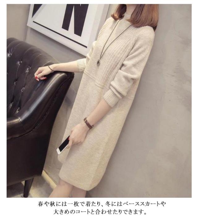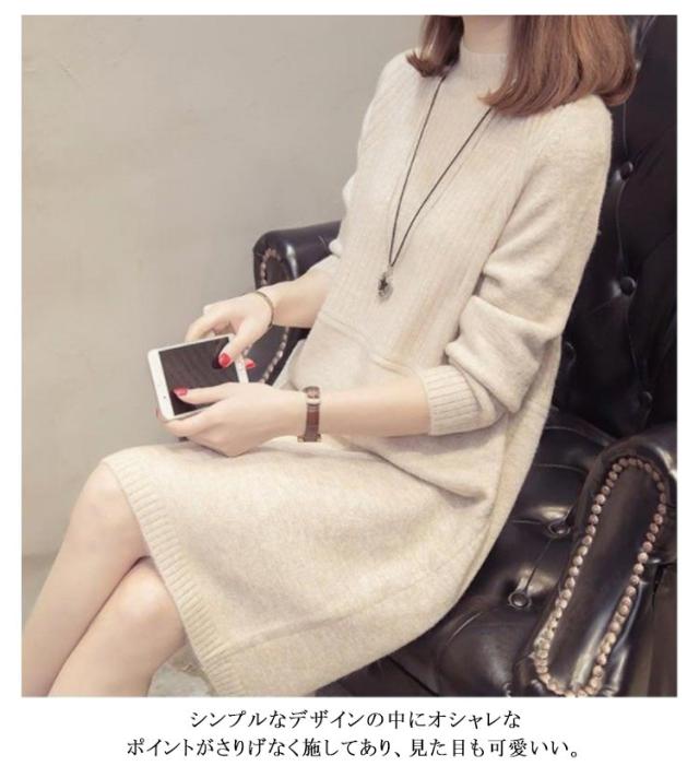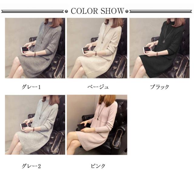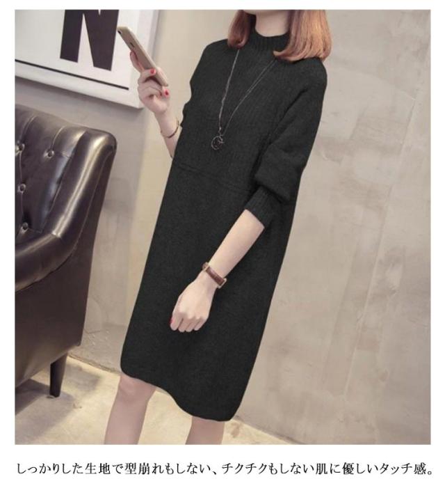 ワンピース チュニック ワンピース 秋冬 長袖 レディース ニットソー ロング丈セーター ニット ニット トップス プチハイネック カジュアル ニットワンピ 膝丈ワンピース オシャレ きれいめ