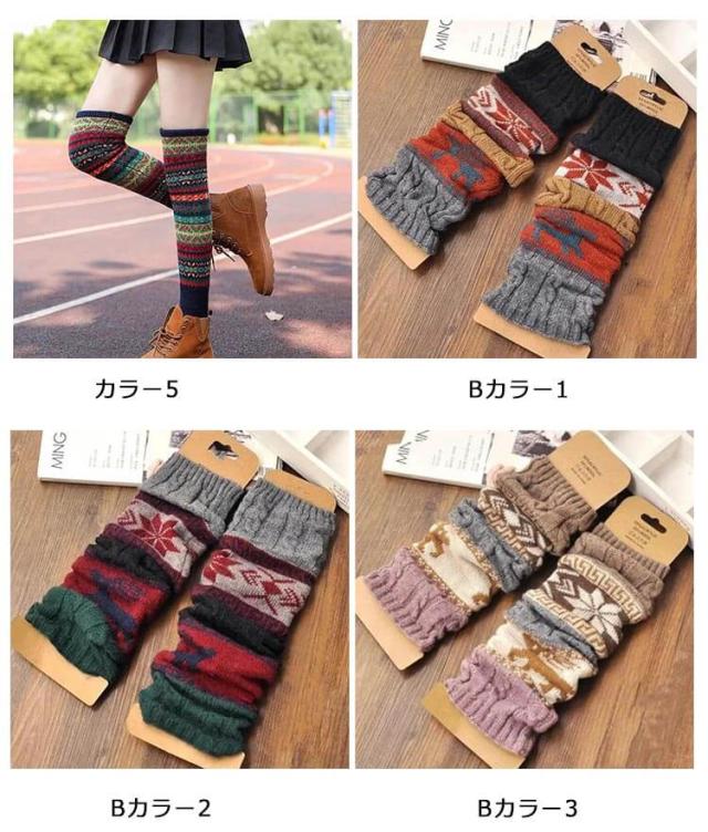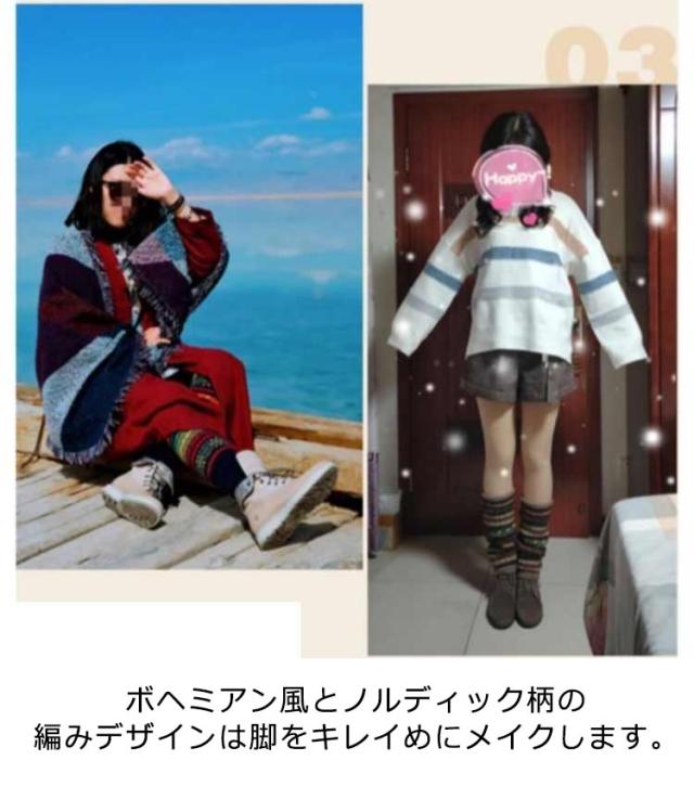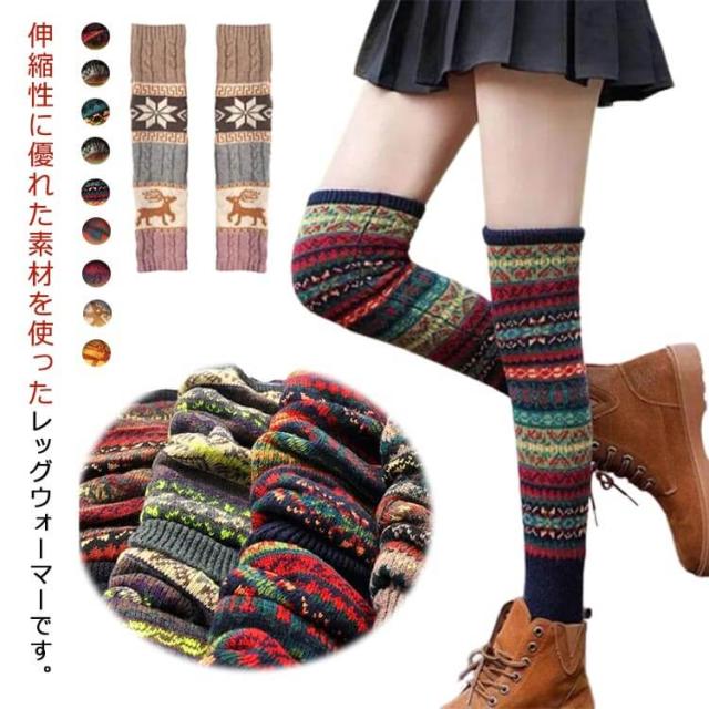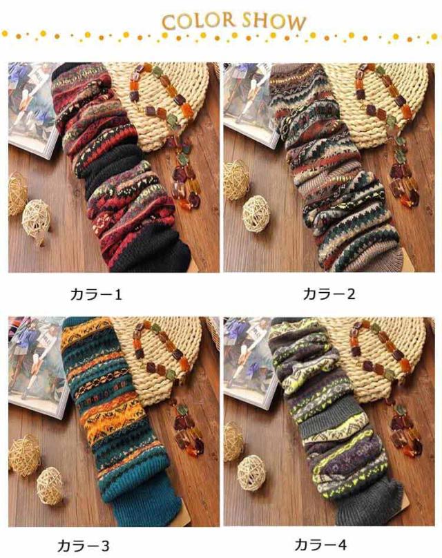 ノルディック柄 ノルディック柄 ニットレッグウォーマー 足首 ウール混 秋冬 ロング 暖かい レッグウォーマー ボヘミアン風 温活 レディース 温める くしゅくしゅ 防寒用 おしゃれ 森ガール レトロ