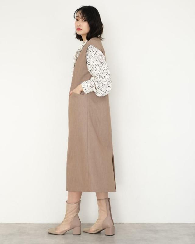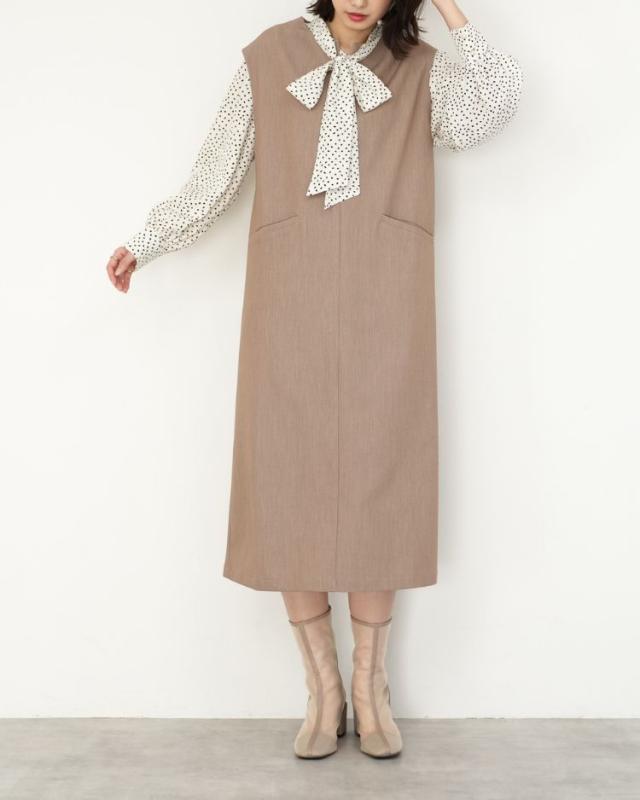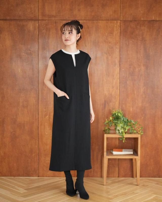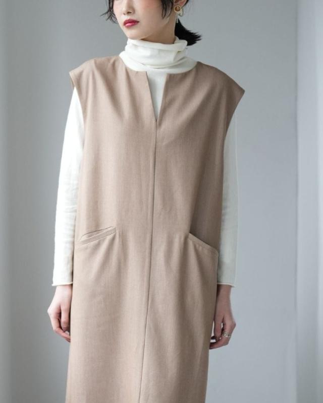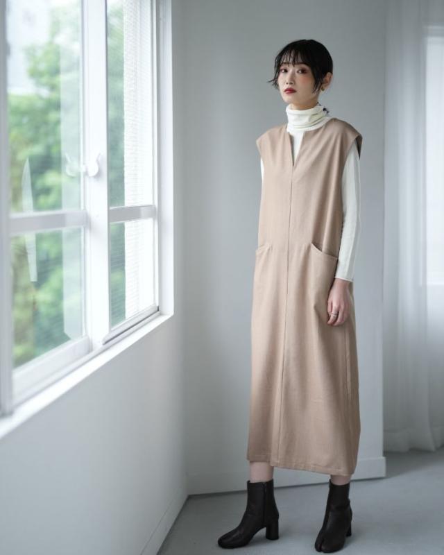 ■着丈121cm■バスト49?p■裾幅56?p■肩幅46cm ポリエステル77%レーヨン18%ポリウレタン5% 裏地:なし 透け感:なし 厚さ:やや厚手 伸縮性:なし ポケット:あり 季節:春〜秋'