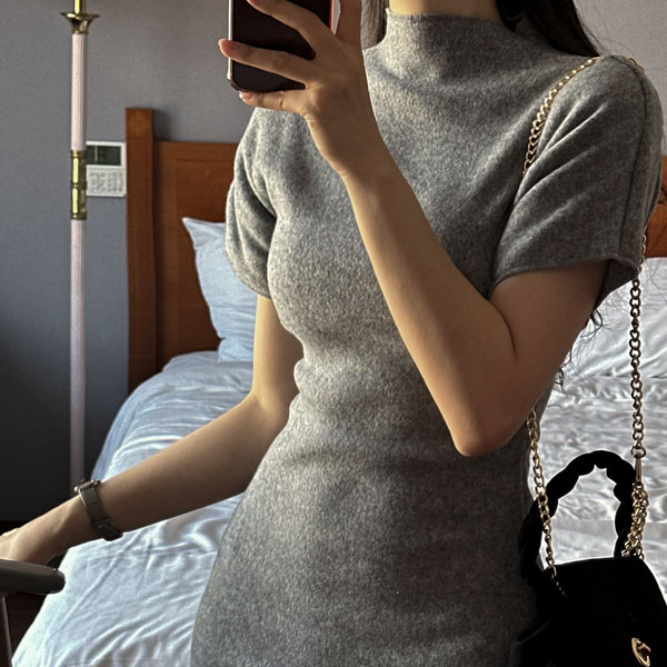 無地 タートルネック フレアAライン 半袖ミニ膝丈ワンピ [4カラー]」 レディース服がお得な S