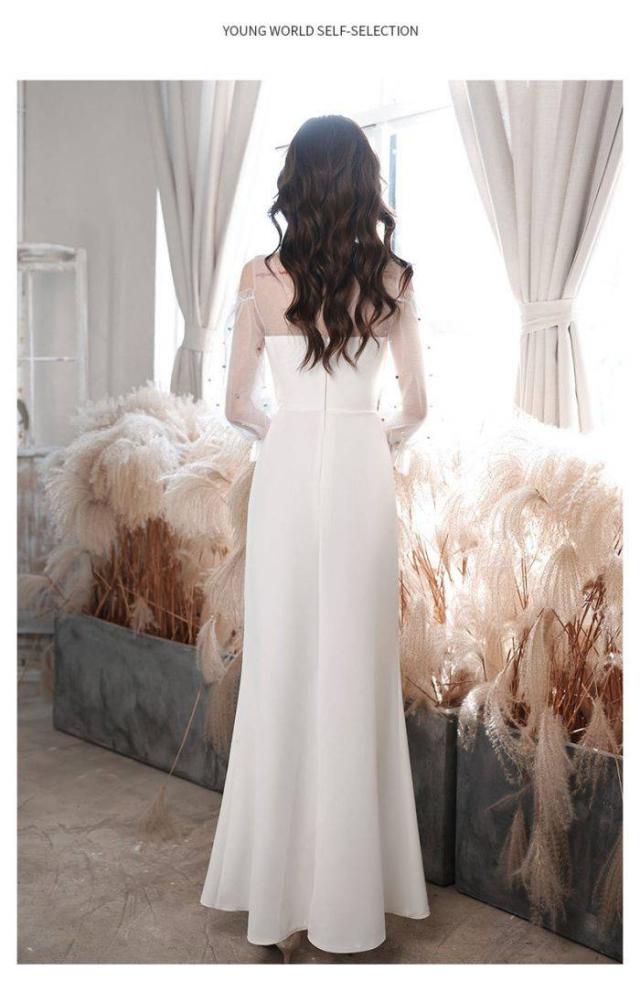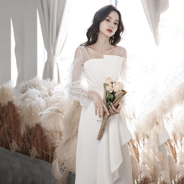 白のイブニングドレス女子2023新品サテンのセレブ感夏の宴会気質ワンピース普段着で細見え
