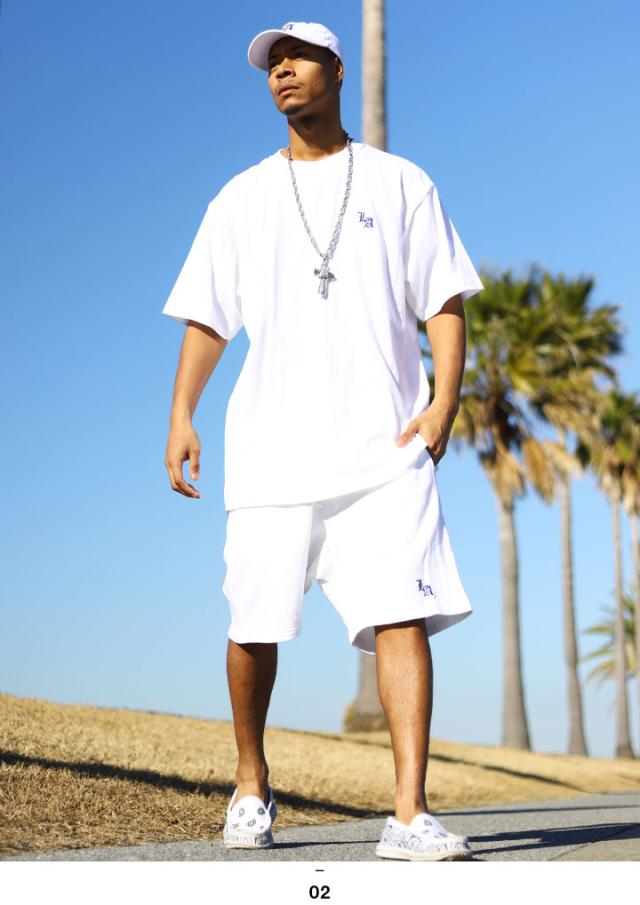 L-2XL おしゃれ かっこいい ワンポイントLos Angeles ストリート オーバーサイズ b系セットアップ ショートパンツ 裏パイル ギャング ローライダー チカーノ スケボー ダンス