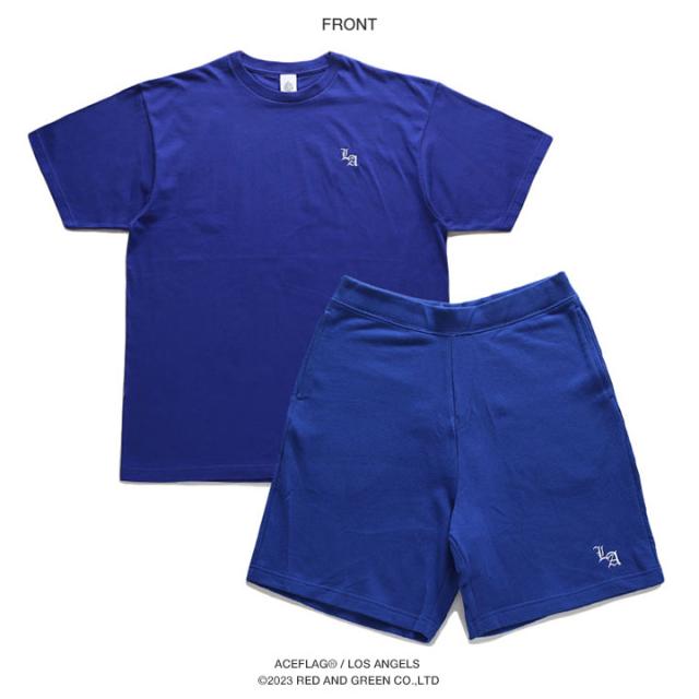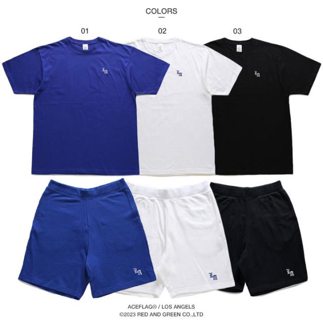 【43%OFF】ACE FLAG 上下セット 半袖 ブランド Tシャツ ハーフパンツ 上下 メンズ 青/白/黒 大きいサイズ エースフラッグ セットアップ LA エルエー 刺繍 ロサンゼルス b系 ストリート系 ハイ AF-SE-TS-124