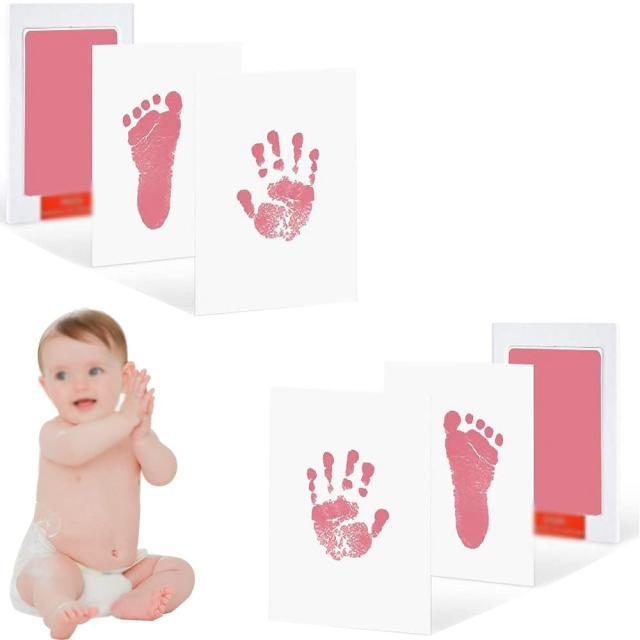 赤ちゃん 手形 足形キット 2セット ピンク 汚れないインク ベビーフレーム ギフト 誕生日 成長記録 出産祝い 1歳誕生日 猫犬手足型 記念