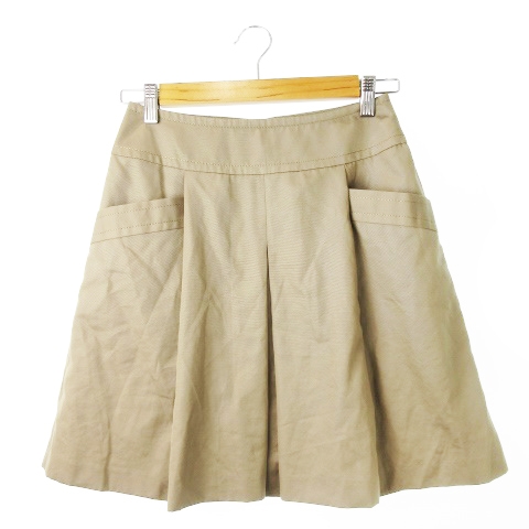 【中古】アンタイトル UNTITLED スカート 台形 ミニ タック ボックスプリーツ 光沢感 薄手 1 ベージュ /CK30
