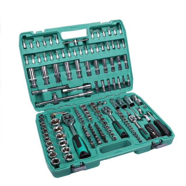 【セット内容】差込角6.3mm(1/4")、ソケットセット:4、4.5、5、5.5、6、7、8、9、10、11、12、13、14mm計13個;ディープソケット:4、5、6、7、8、9、10mm計13個;E型ソケット:E4、E5、E6、E7、E8計5個。差込角9.5mm、ソケットセット:10、11、12、13、14、15、16、17、18、19mm計10個;ディープソケット:10、11、12、13、14、15mm計6個;E型ソケット:E10、E11、E12、E14、E16、E18 計6個。差込角12.7mm、ソケットセット:10、11、12、13、14、15、16、17、18、19、20、21、22、24、27、30、32mm計17個;ディープソケット:16、17、18、19、22mm計5個;E型ソケット:E20、E24計2個。30個ソケットビット、44個ビットセット、7個六角レンチ、5個エクステンションバー、3個ラチェットハンドル、3個プラグソケット、3個ユニバーサルジョイント、1個スライドハンドル、1個スピンナーハンドル、3個弾性ポスト、1個アダプター。