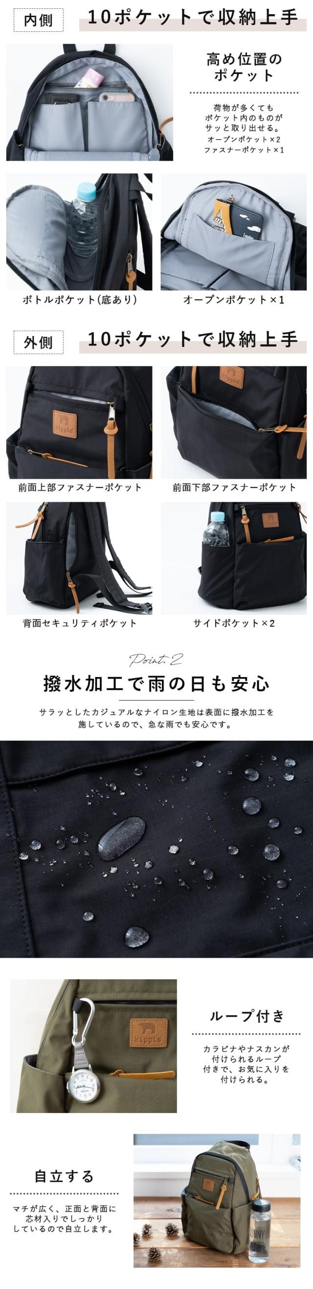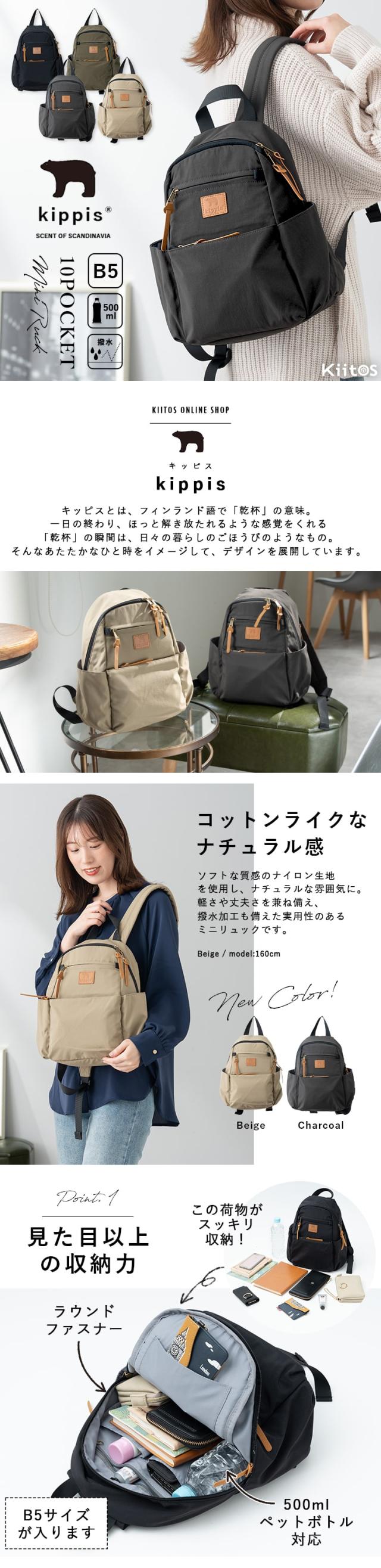 リュック レディース ブランド キッピス kippis 小さめ おしゃれ 通勤 通学 バッグ 大人 かわいい 撥水 軽量 ペットボトル 北欧 b5 10ポケット 収納 背面ポケット 自立 ナイロン ミニリュック リュックサック コンパクト