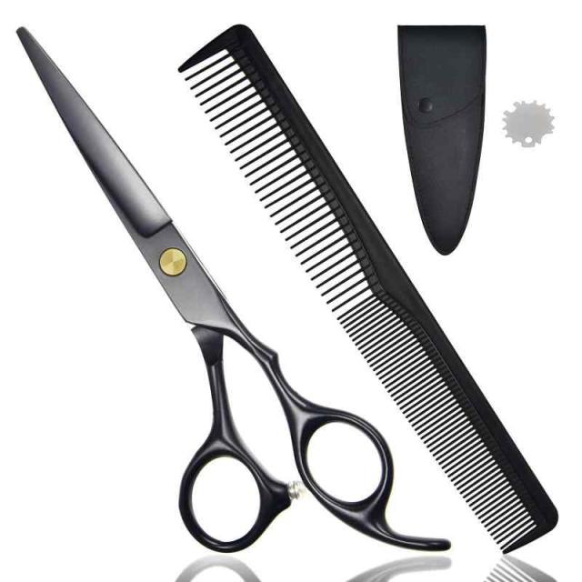 LESNIC セルフカット用 散髪ハサミ(髪切りハサミ) ブラック|前髪カット対応(ステンレス鋼)/男性・女性・子ども用・美容師・理容師向け