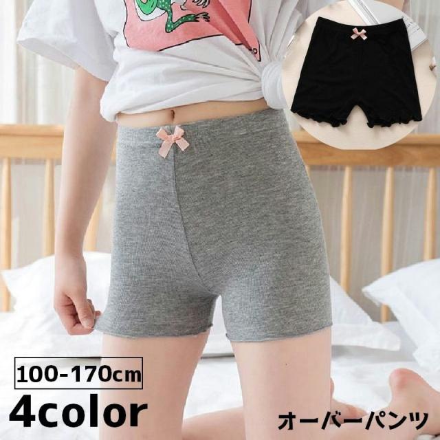 オーバーパンツ ショートパンツ ペチパンツ インナー キッズ ジュニア 女の子 インナーパンツ リボン ウエストゴム 3分丈 か