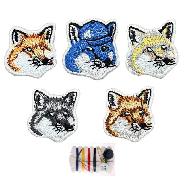 ?セット内容:漫画のキツネの頭刺しゅうパッチ5個セット、携帯用の裁縫バッグ付き。サイズ:約3CM*3CM。