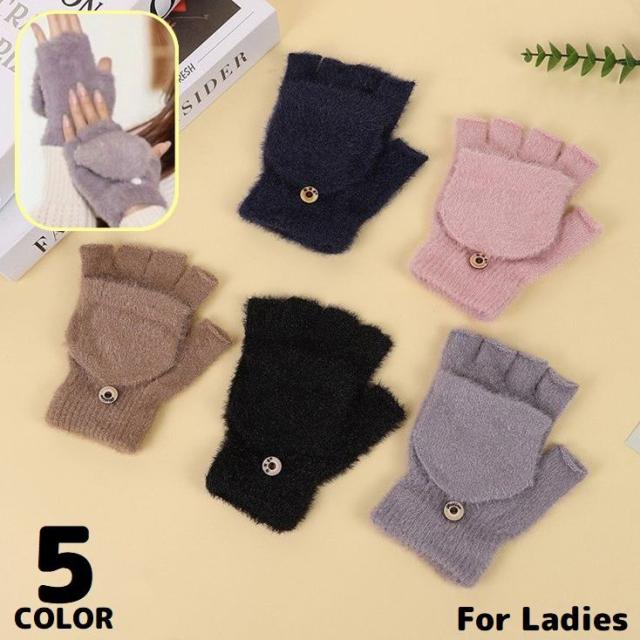 ニット手袋 ミトンカバー付きグローブ レディース スマホ対応 指切り 指なし ショート 防寒 防風 暖かい 保温 秋冬 通勤通学