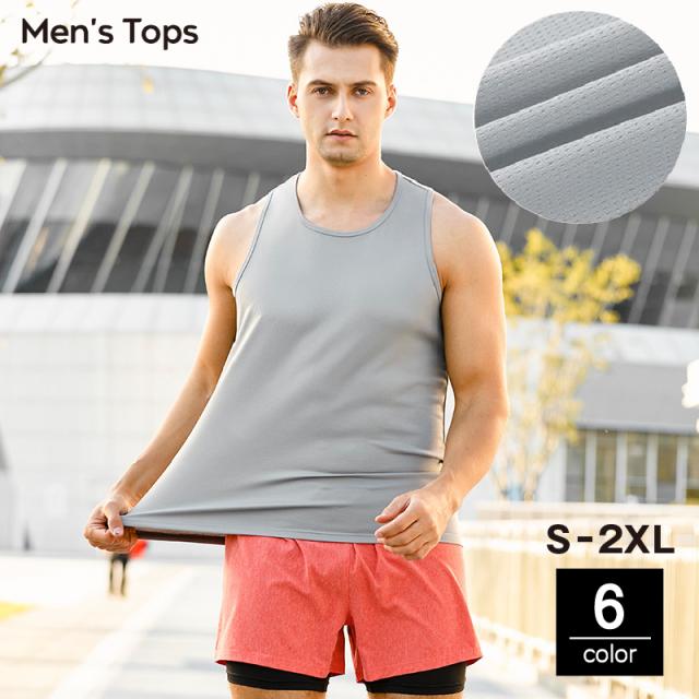 タンクトップ メンズ 男性 大きいサイズ トップス Uネック シンプル メッシュ ストレッチ 吸汗 速乾 通気性 スポーツ ラン
