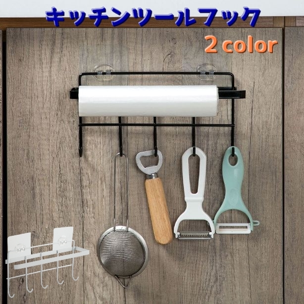 キッチンツールフック キッチンフック 5連 整理用品 調理器具収納 吊り下げ 壁掛け 粘着タイプ ビニール袋 ハンガー付き デッ