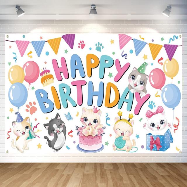 かわいい猫 バースデー?タペストリー?猫 誕生日?飾り付け?バースデー?フォトポスター?誕生日 ねこ 写真背景 Happy?Birthday パーティー?