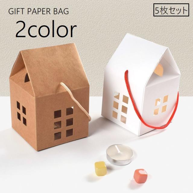 紙袋 クラフトバッグ 5枚セット ギフトバッグ ペーパーバッグ 手提げ 手土産袋 ラッピング用品 ハウス型 家型 ハート くり抜