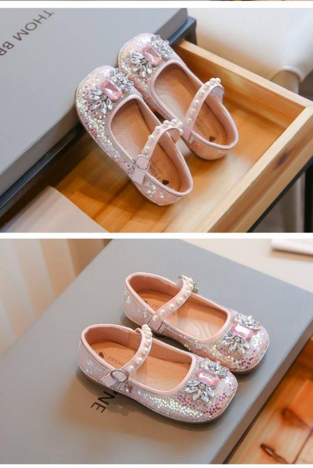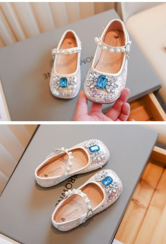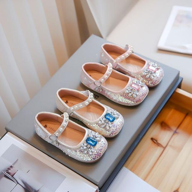 可愛い年秋口新モデル女子供姫 韓国風ラインストーン子供 超美的女子供方口鞋
