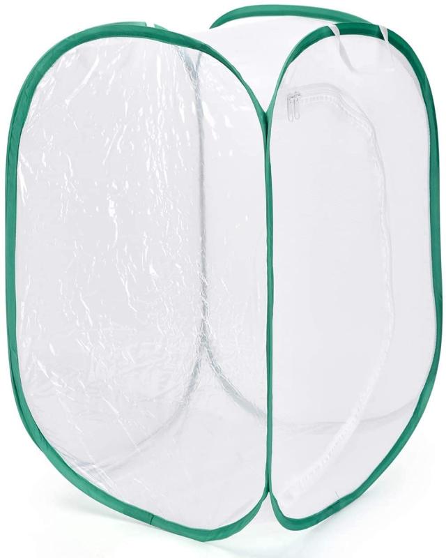 SATiNU 昆虫飼育箱 植物ケージ 標本箱 折り畳み虫かご 昆虫ケージ ポップアップハウジング 通気性 ネット 3色 (E 大 緑辺 ホワイト網 90*