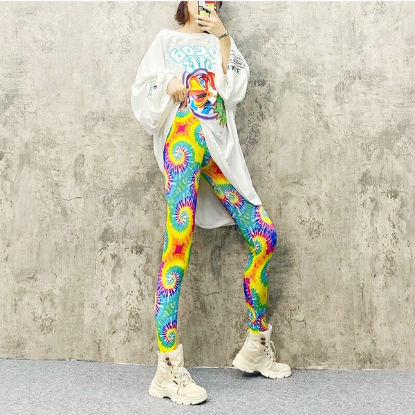 ダンス衣装 DANCEファッション カジュアル系 ストリート系 インパクトあり!LA風!派手柄プリントレギンス 目立ち度抜群