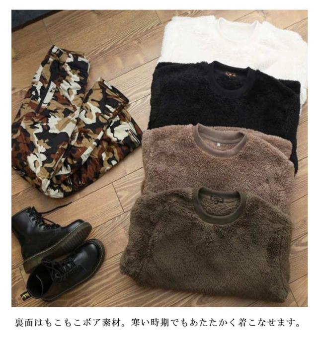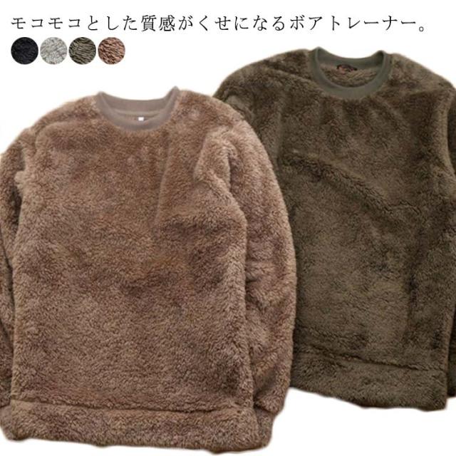 ボア トレーナー メンズ トップス スウェット 長袖 ワイド シルエット クルーネック 裏起毛 BIGシルエット 裏ボア トップス 韓国 暖かい クルーネック 防寒 プルオーバー ゆったり もこもこ カジュアル ストリート カジュアル 大きいサイズ 秋 冬 送料無料