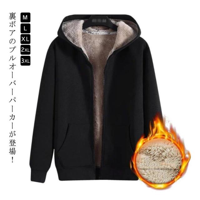 ジップパーカー パーカー メンズ 裏ボアパーカー あったか 裏起毛 スウェットパーカー 秋冬 厚手 暖かい あたたかい 防寒 長袖 フード付きパーカー 大きめ 黒 ボア 上着 部屋着 ルームウェア ふわふわ プルオーバー ビッグシルエット ビッグパーカー 送料無料