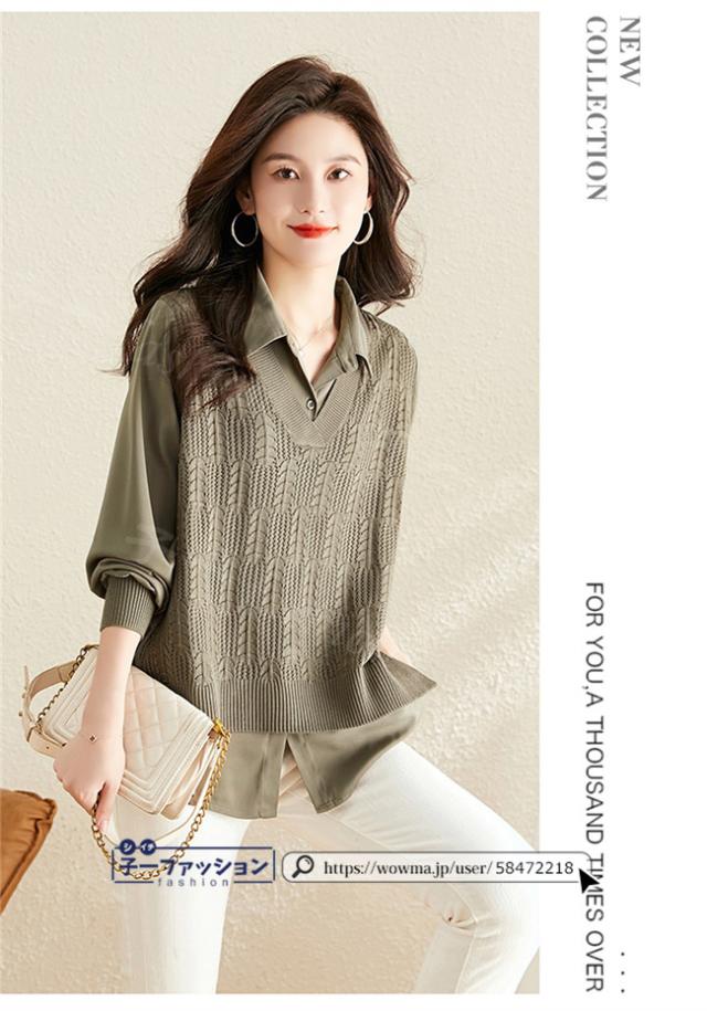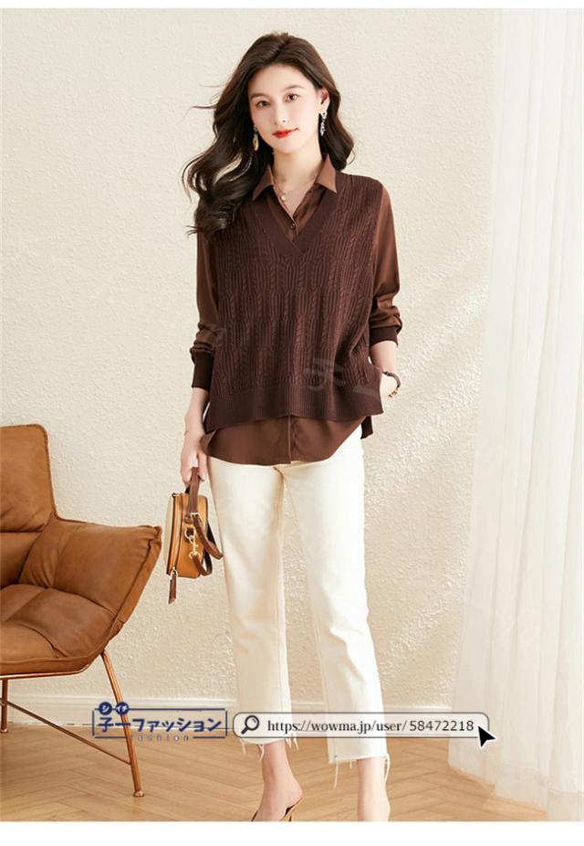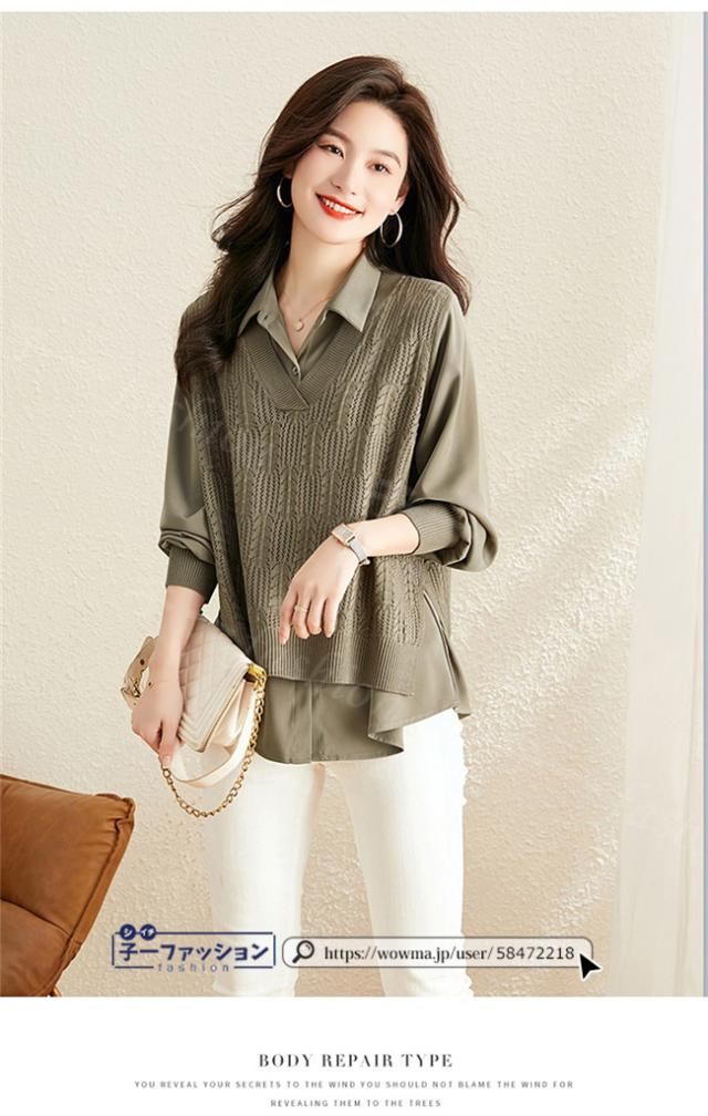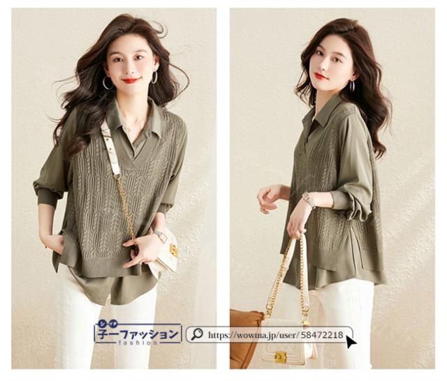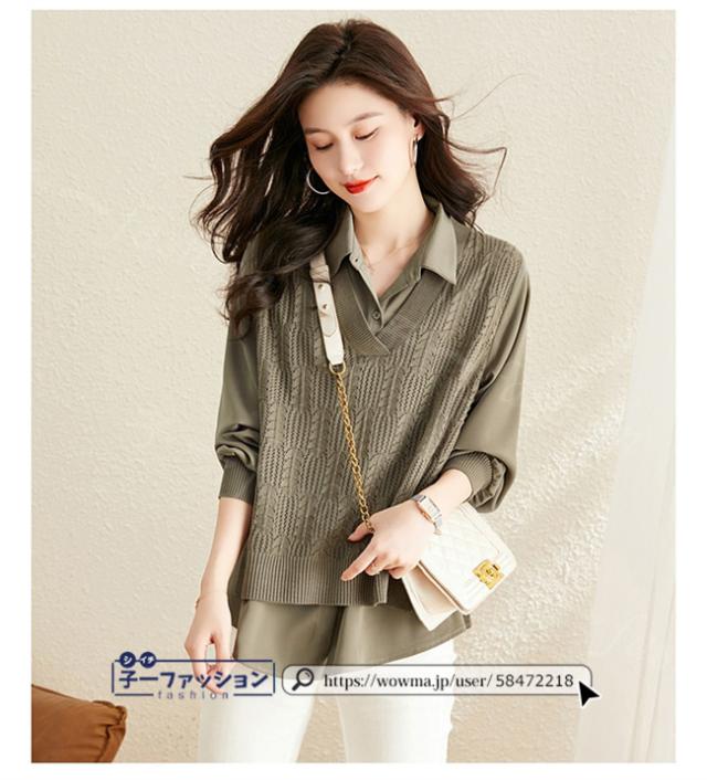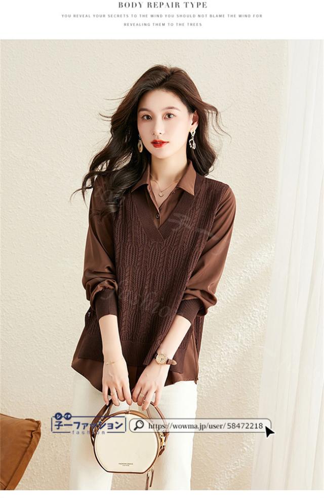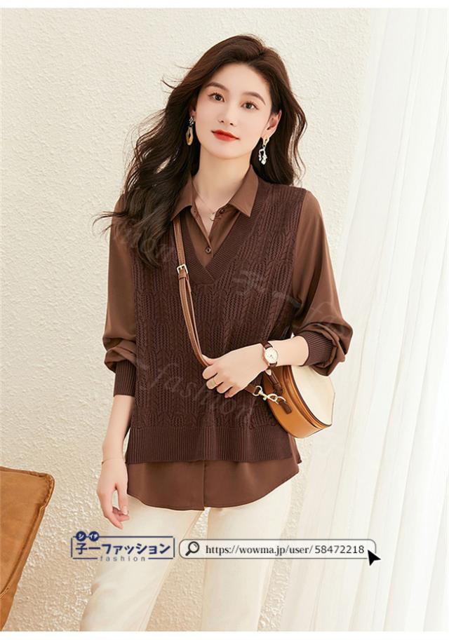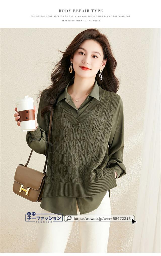 ブラウス 冬新作 長袖 レディース トップス レイヤード風 重ね着 プルオーバー 異素材 ニット 楽ちん オフィス シャツ チュニック 春夏 無地 シンプル 体型カバー きれいめ かわいい 洗える 気軽 手軽 通勤 春 秋 ゆったり ギフト 冬新作 春服 秋冬