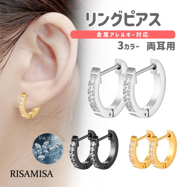 キュービックリング ピアス 両耳 金属アレルギー 対応 10mm CZダイヤ スクエア フープ リング メンズ レディース サージカルステンレス