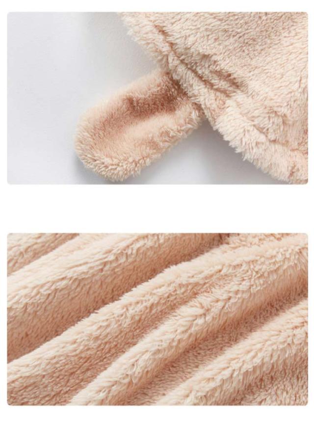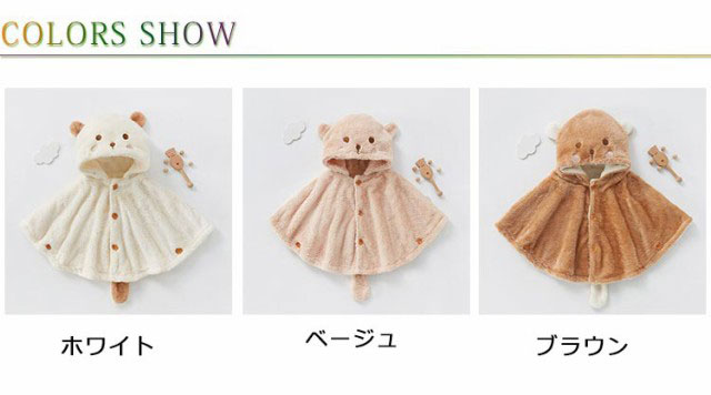 | 一体型フードデザインで風除け保温です 前身頃オープンデザインで着脱が便利です 下のだん調節ボタンデザインでしっかりして風除け モコモコ素材のシンプルで可愛いベビーマントです 裏にふわふわ素材をボンディングしてが一体化しているので、かさばらずすっきり着られて、なお且つあったかい 小さなお子様のマントスタイルはとってもキュートですね ベビーちゃんの冬のコーディネートにバッチリ | |