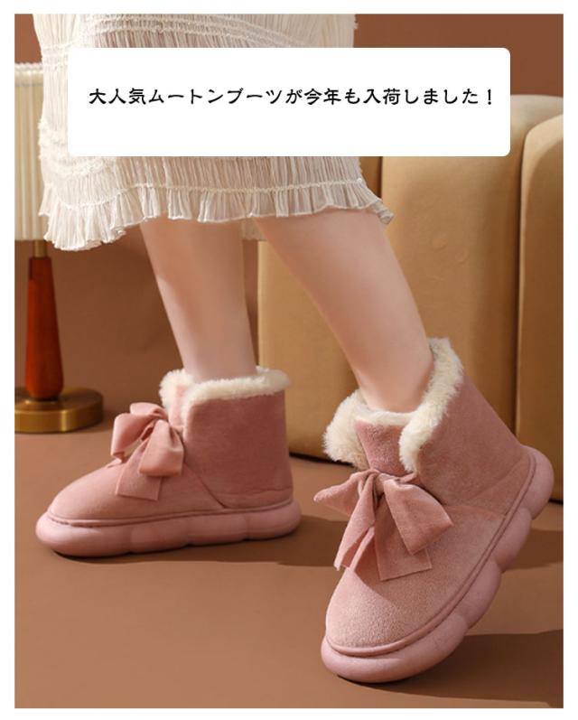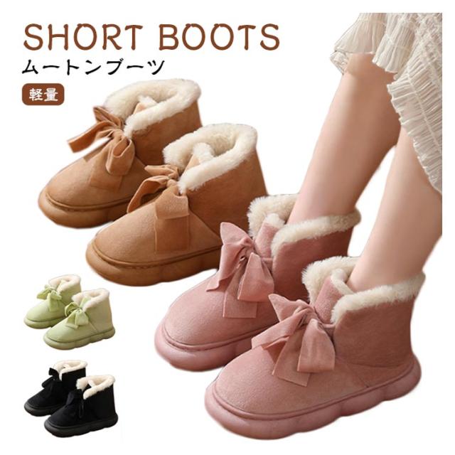 リボン ムートン ムートンブーツ レディース 秋冬 ムートン ショート ブーツ リボン ショートブーツ ショート丈 軽量 歩きやすい スノーブーツ 痛くない フェイクファー スノーシューズ エコファー ショート ムートンシューズ 防寒
