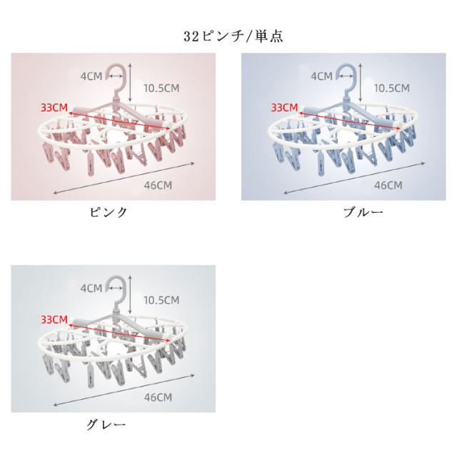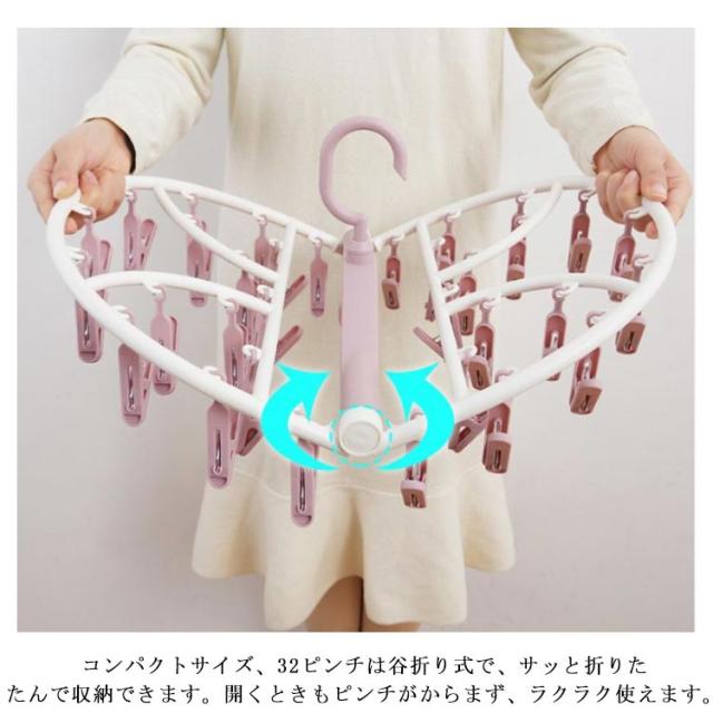 | 軽くて丈夫なプラスチック製のピンチハンガー くつ下、下着、ハンカチなどの小物を干すのにちょうどいいコンパクトサイズの折りたたみ式ハンガーです。 選べる8/12/16/32ピンチ数量、ニーズに合わせてお選びいただけるのもうれしい♪ ピンチ吊り具が360度回転するので、洗濯物が干しやすいです。 ピンチ部分は凹凸のデザイン、しっかり挟んで安定感抜群。 コンパクトサイズ、32ピンチは谷折り式で、サッと折りたたんで収納できます。開くときもピンチがからまず、ラクラク使えます。 | |