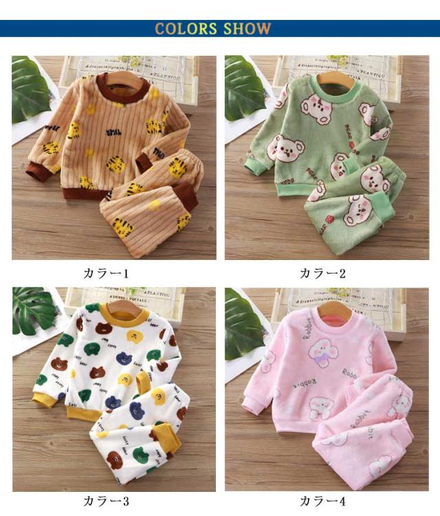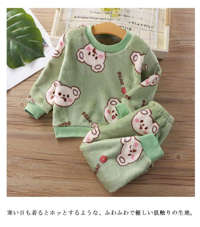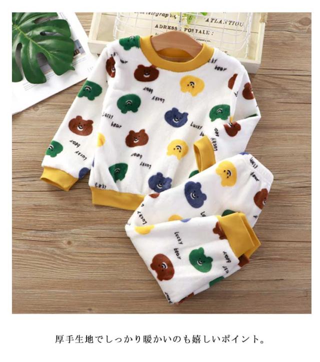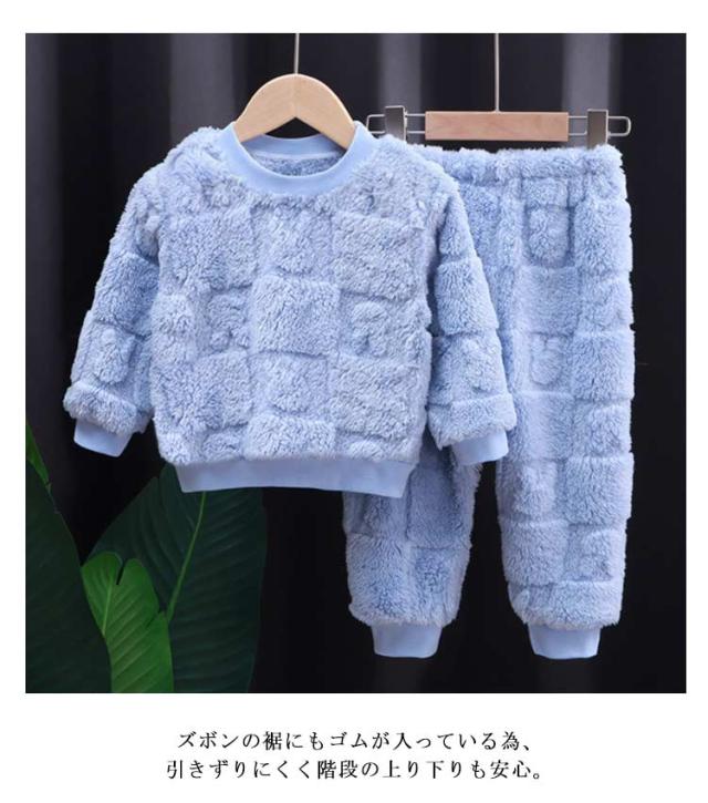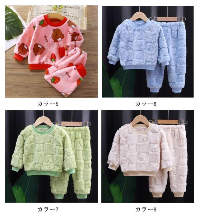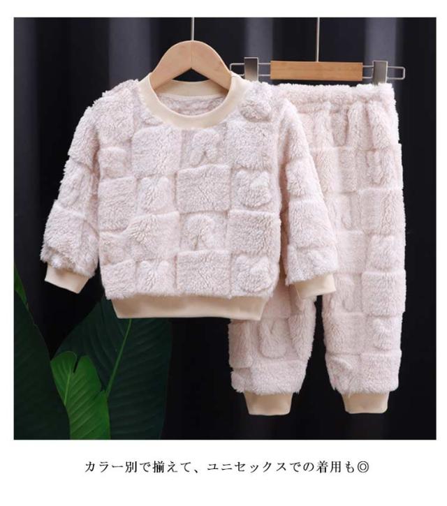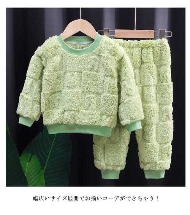 上下セット ベビー フリース 子供服 ルームウェア 100 パジャマ 男の子 暖かい もこもこ キッズ 秋冬 寝巻き 無地 かわいい 部屋着 長袖 キッズ おしゃれ ふわふわ 90 厚手 110 120 130 140 150