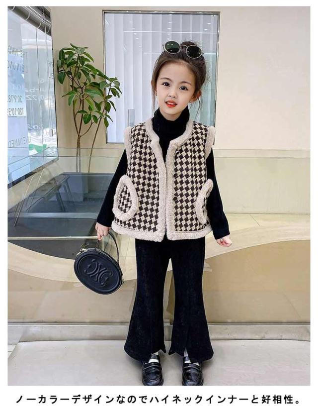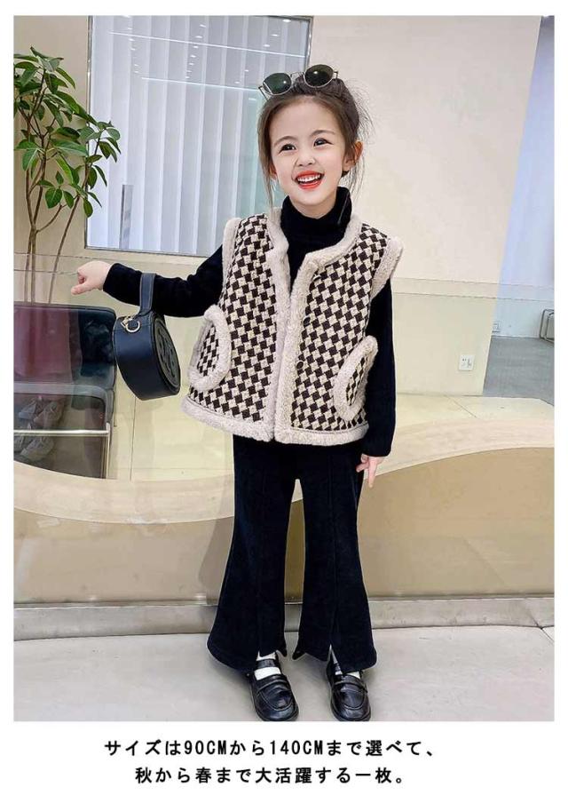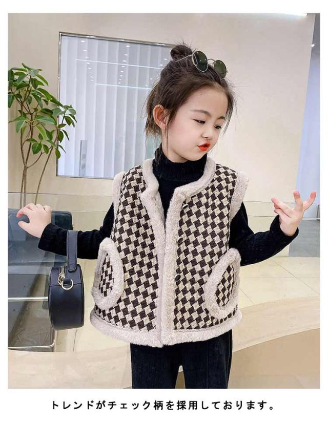 アウター 裏起毛 ジャケット ノーカラージャケット ノースリーブ 90 子供服 女の子 ベスト チェック柄 子供服 春 秋冬 キッズ 100 110 120 130