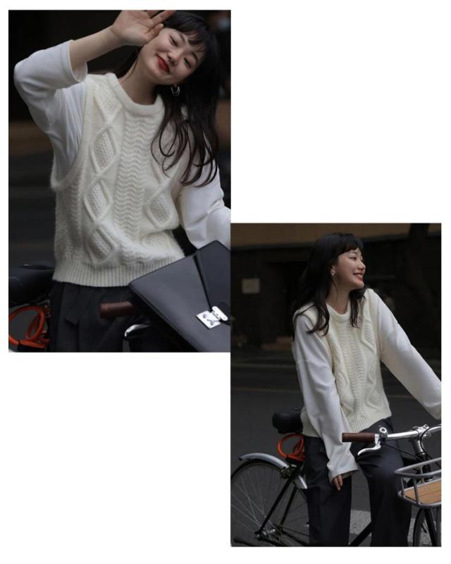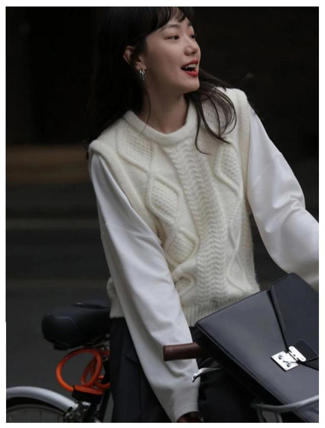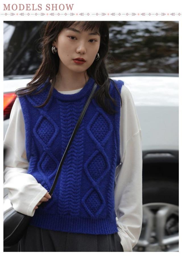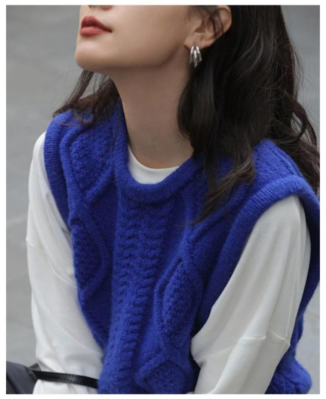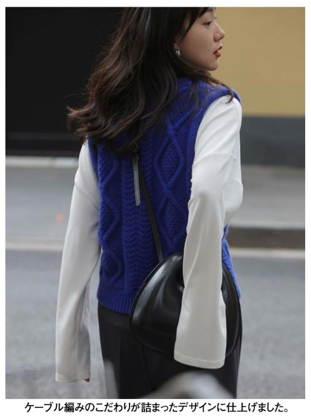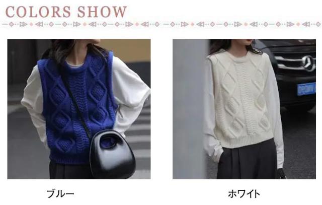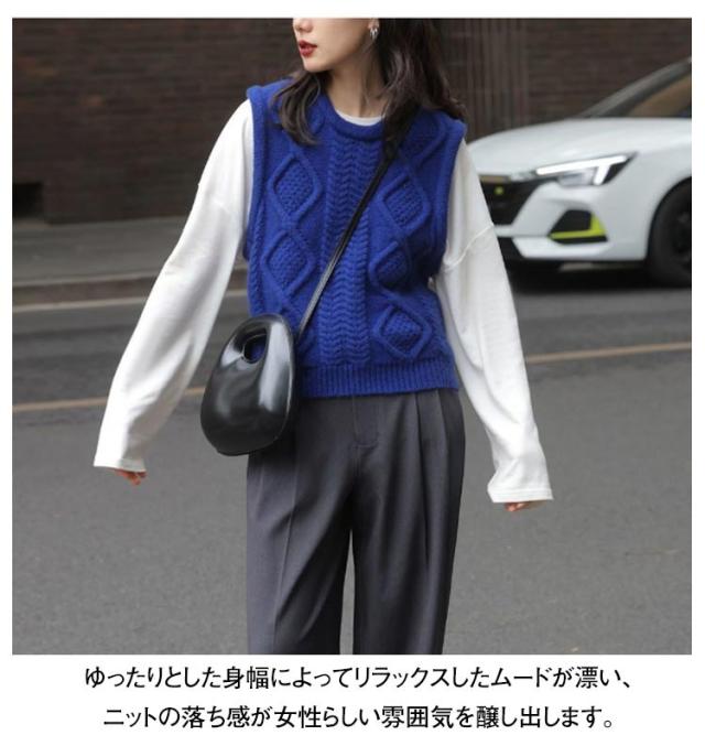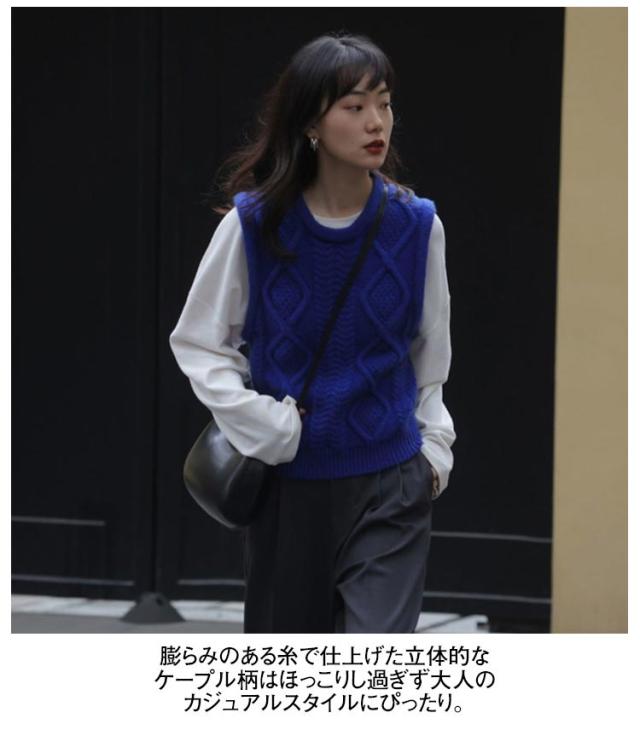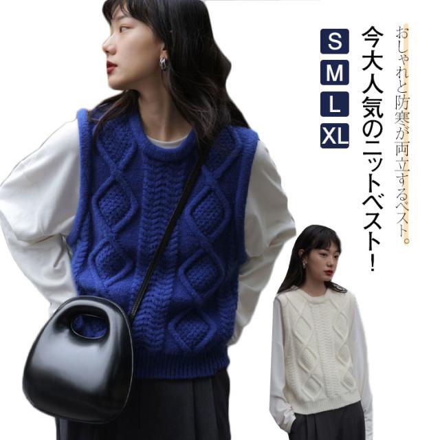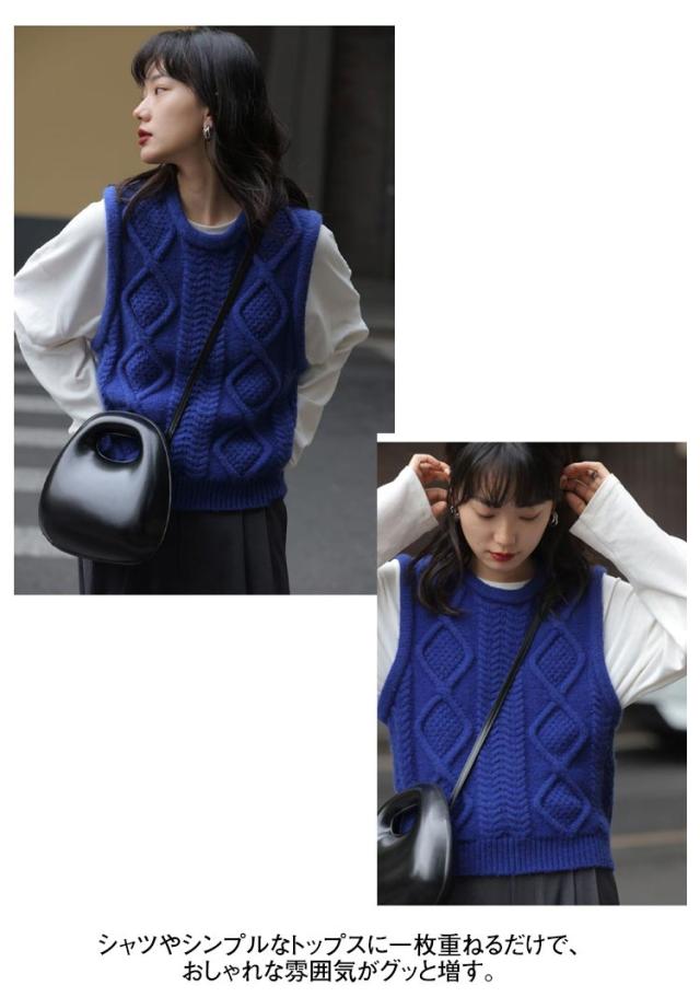 ニットベスト ニットベスト レイヤード ラウンドネック 重ね着 ケーブル編み カジュアル 無地 セーター おしゃれ ストリート ノースリーブ 秋冬 シンプル 通勤 通学 クラインブルー ホワイト 20代 30代 40代